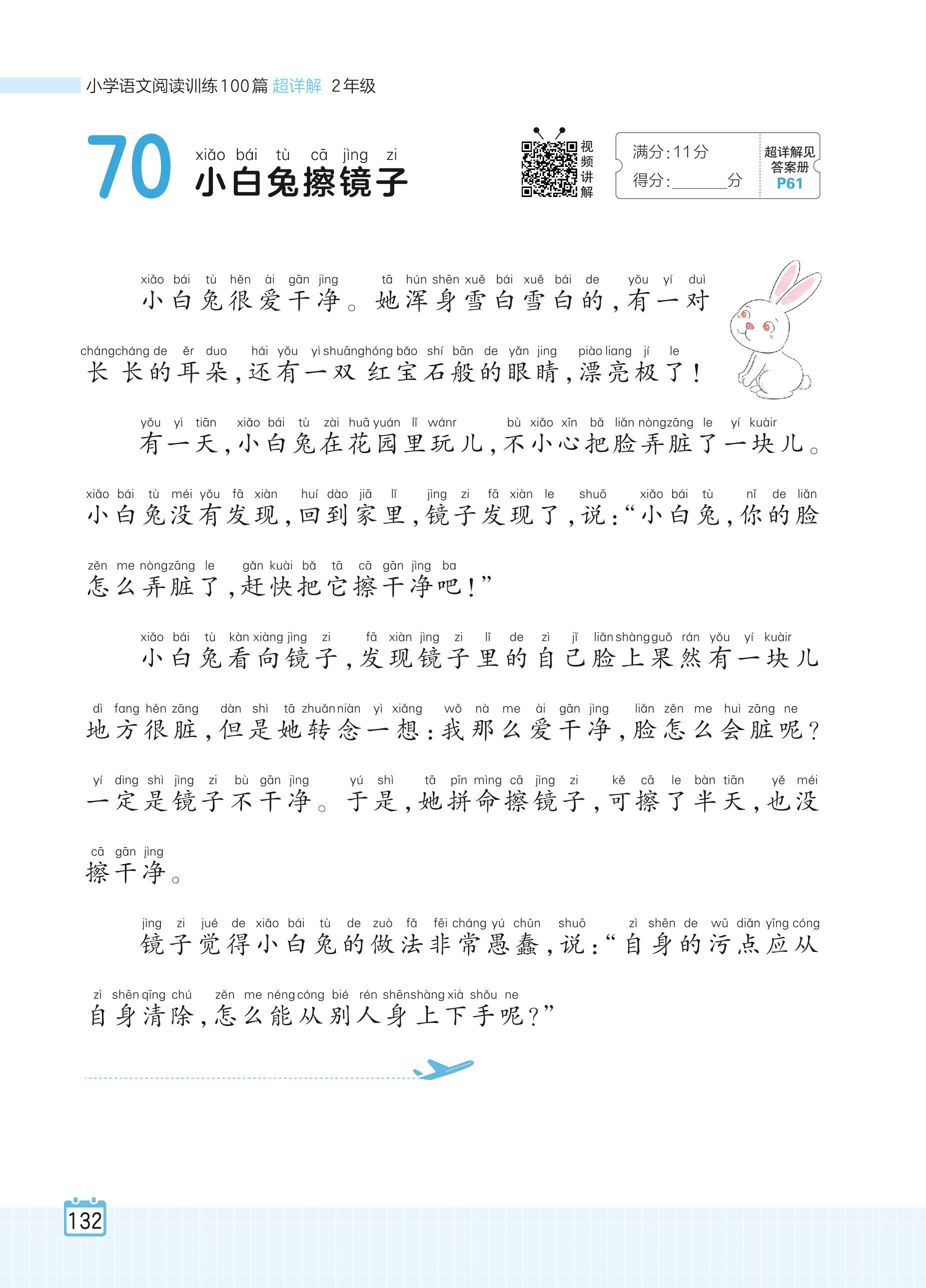 2024全一册二年级语文人教版 专题五 寓言故事 70 小白兔擦镜子