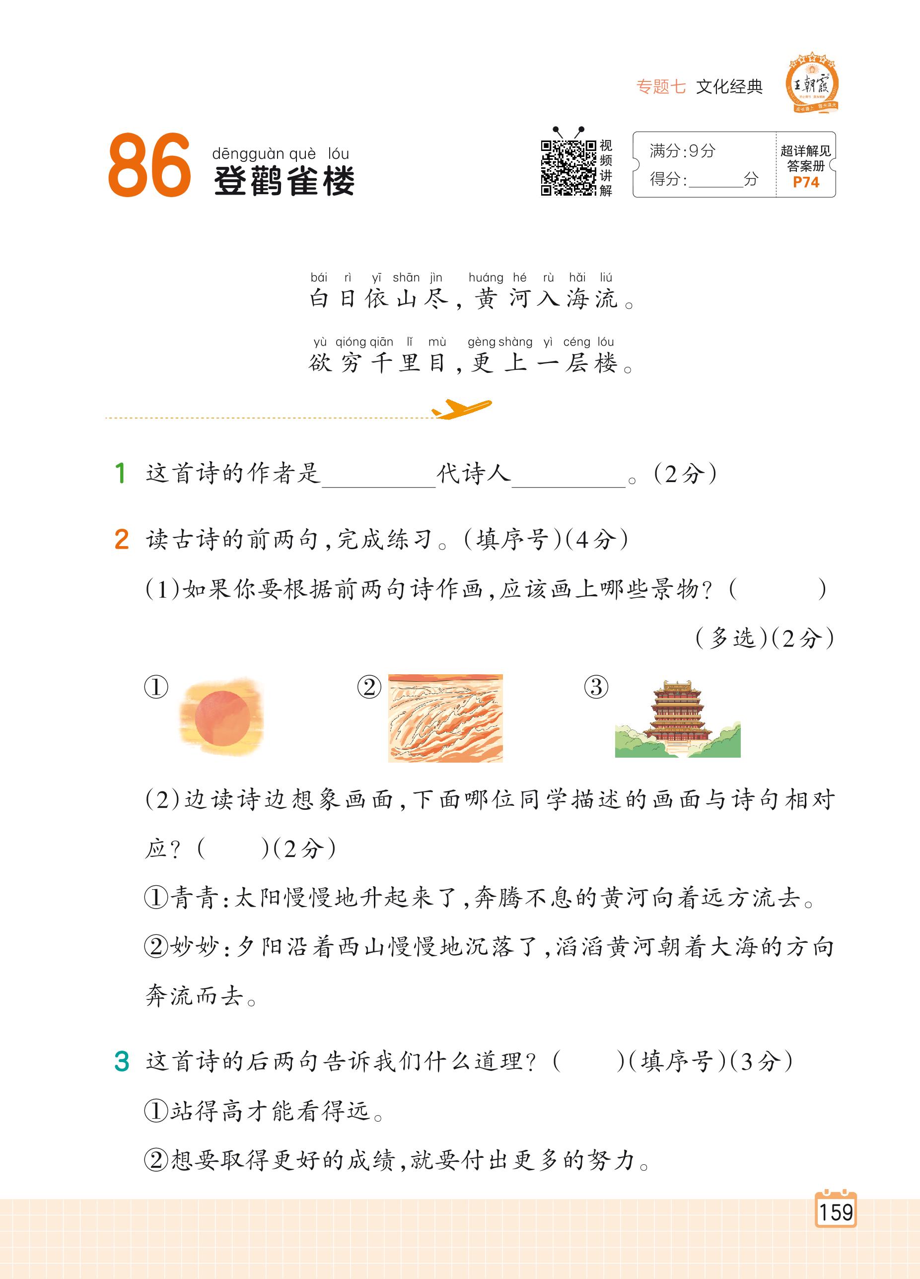 2024全一册二年级语文人教版 专题七 文化经典 86 登颧雀楼