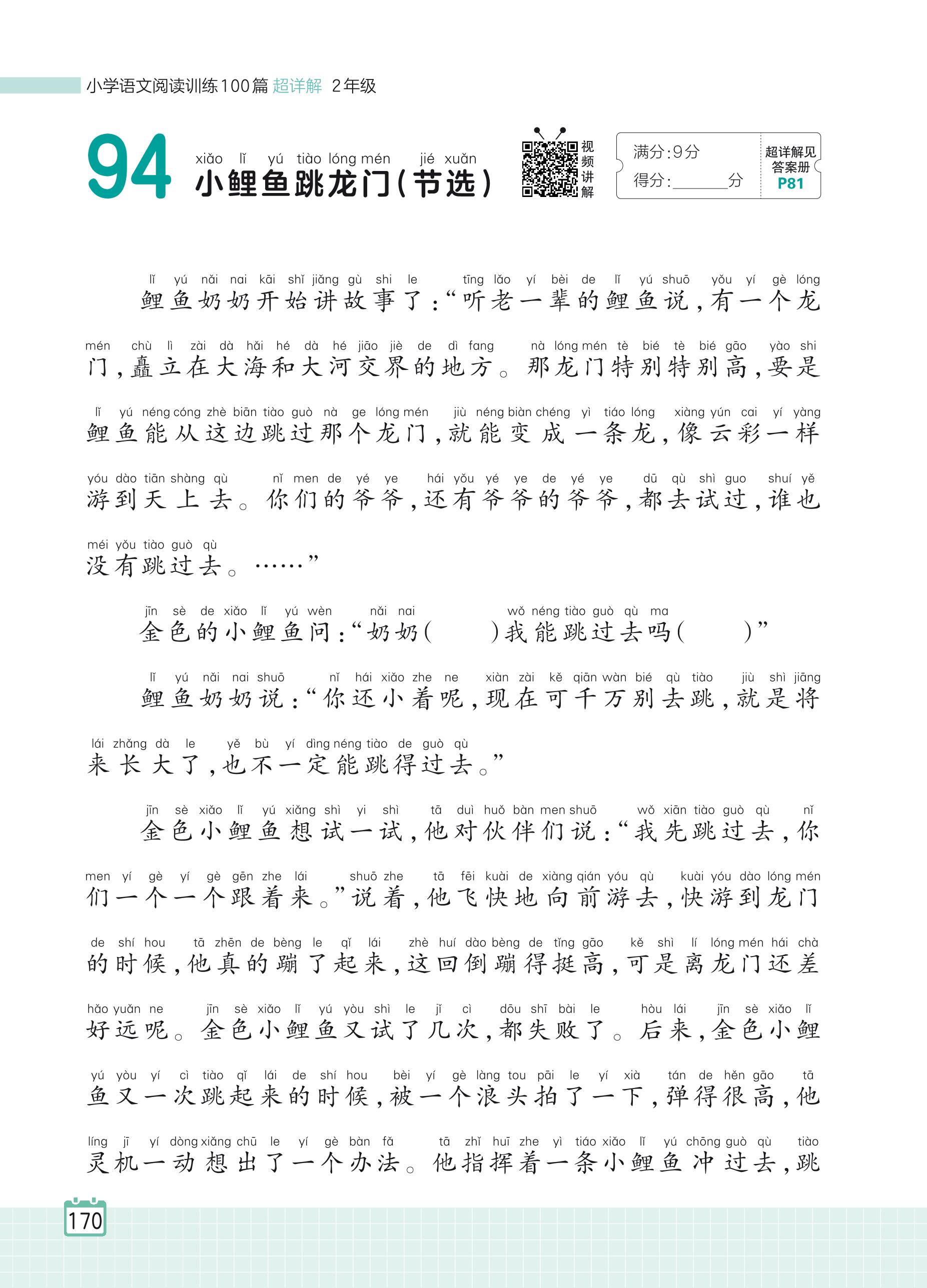 2024全一册二年级语文人教版 专题八 整本书阅读 94 小鲤鱼跳龙门(节选)