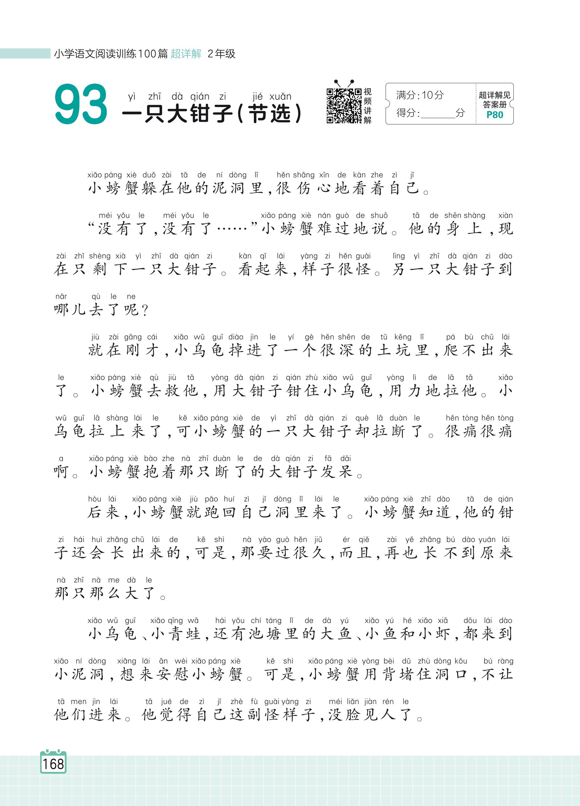 2024全一册二年级语文人教版 专题八 整本书阅读 93 一只大钳子(节选)