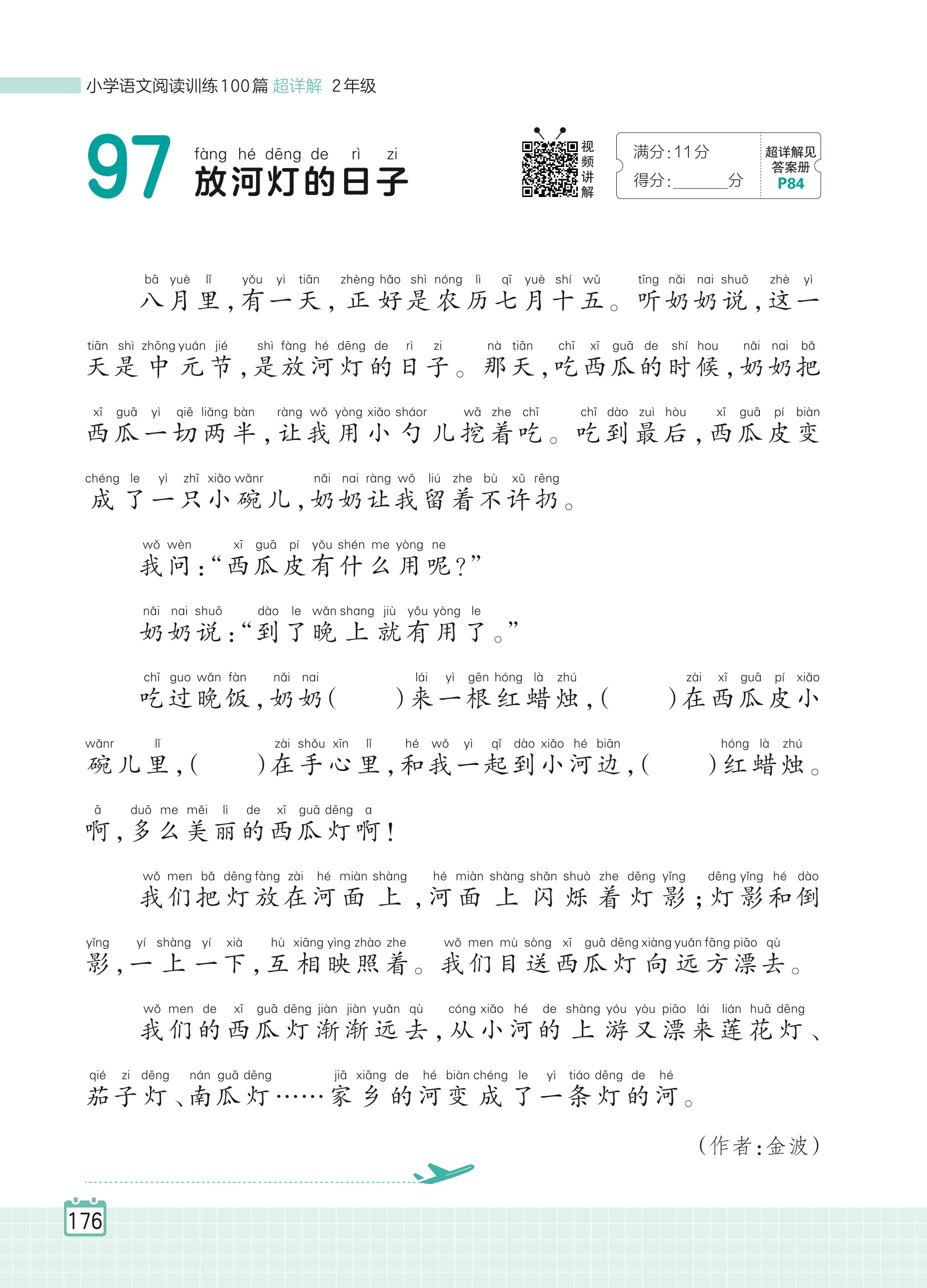 2024全一册二年级语文人教版 专题八 整本书阅读 97 放河灯的日子