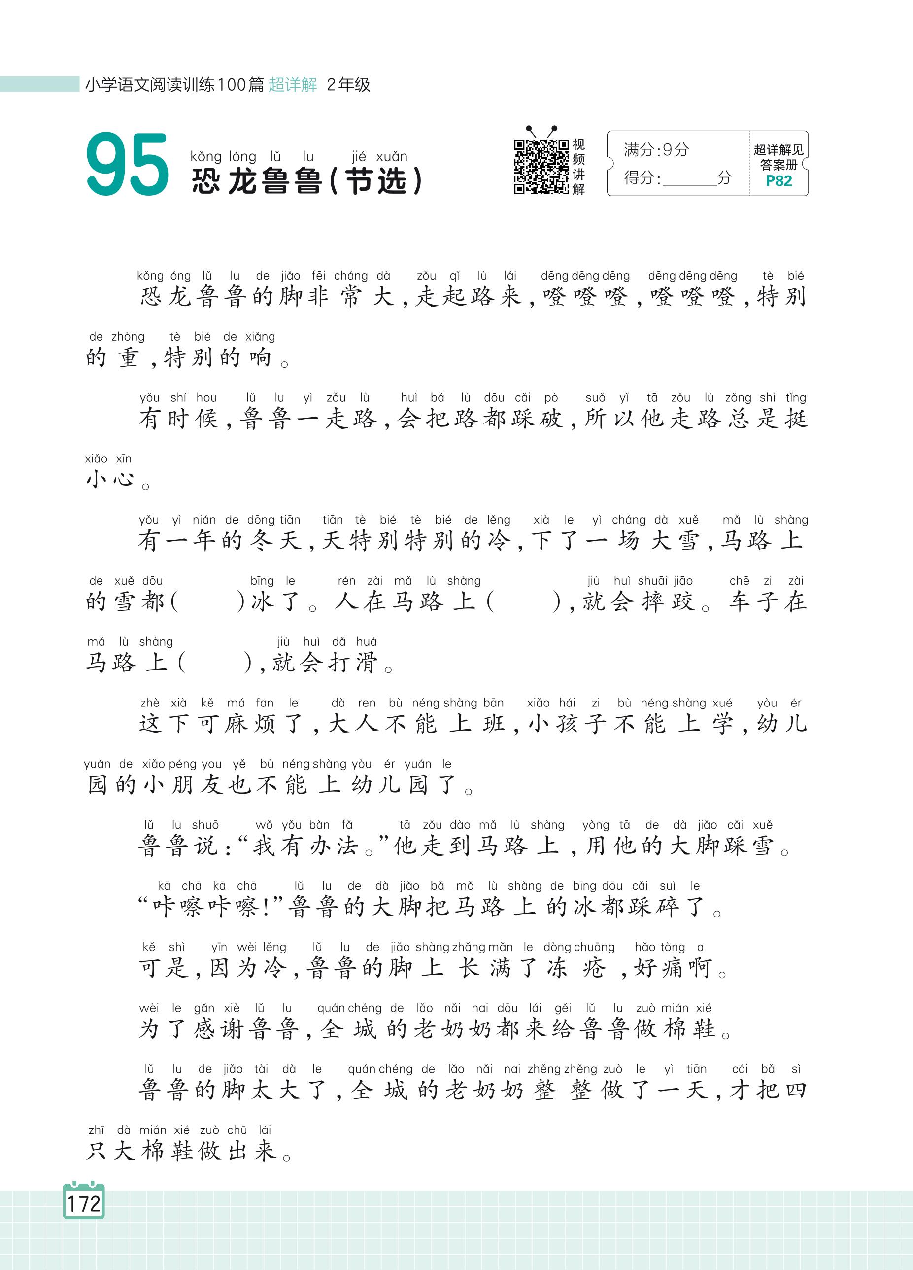 2024全一册二年级语文人教版 专题八 整本书阅读 95 恐龙鲁鲁(节选)