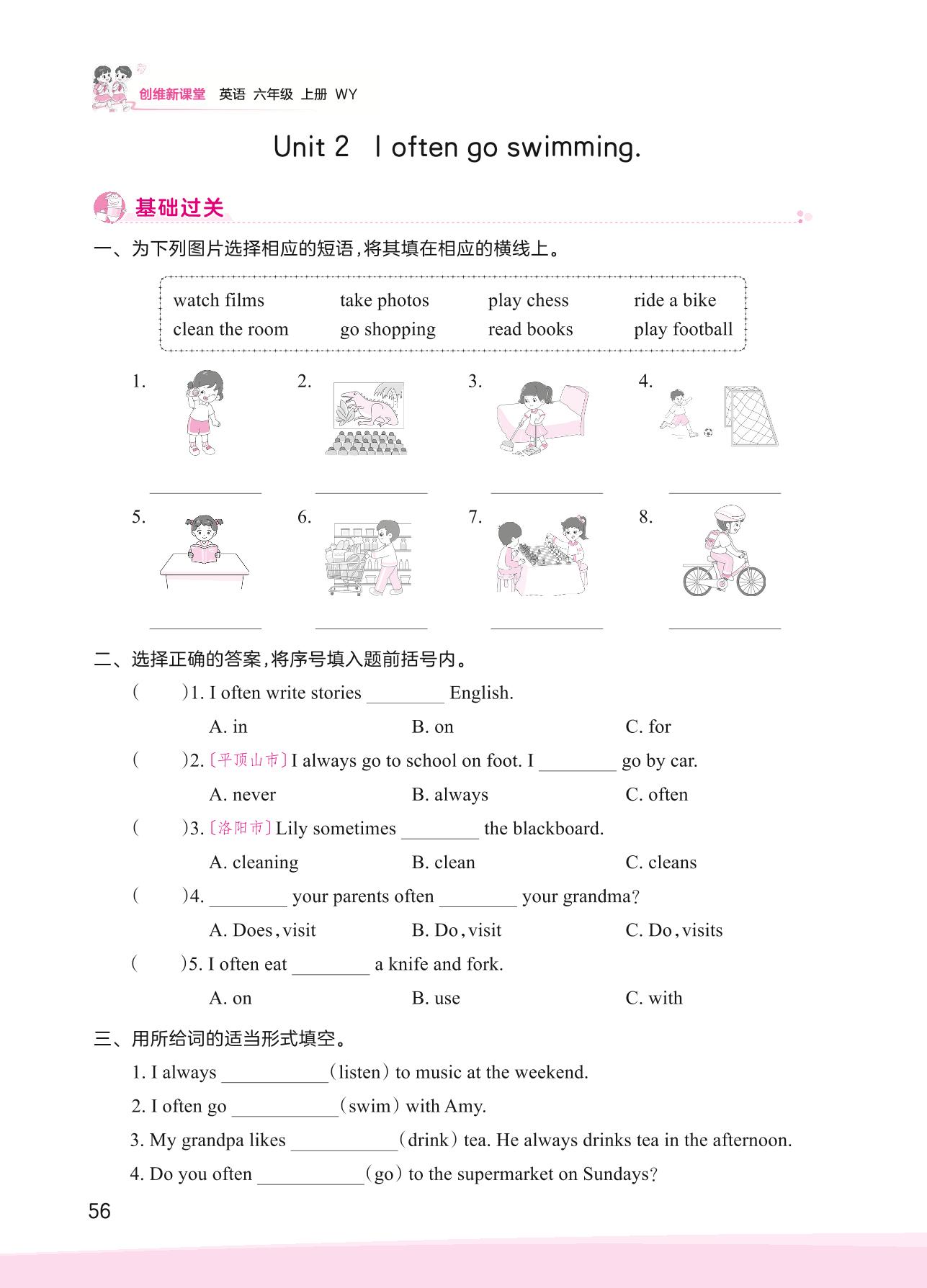 2023上册六年级英语外研版 Module 8—Unit 2 I often go swimming.