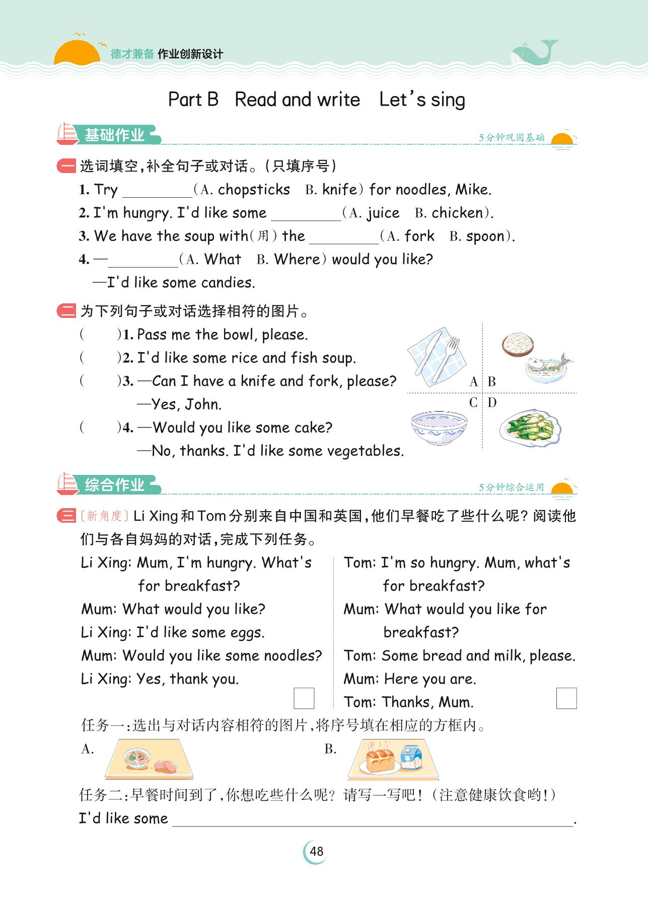2023上册四年级英语人教PEP版 Unit 5—Part B Read and write Let’s sing