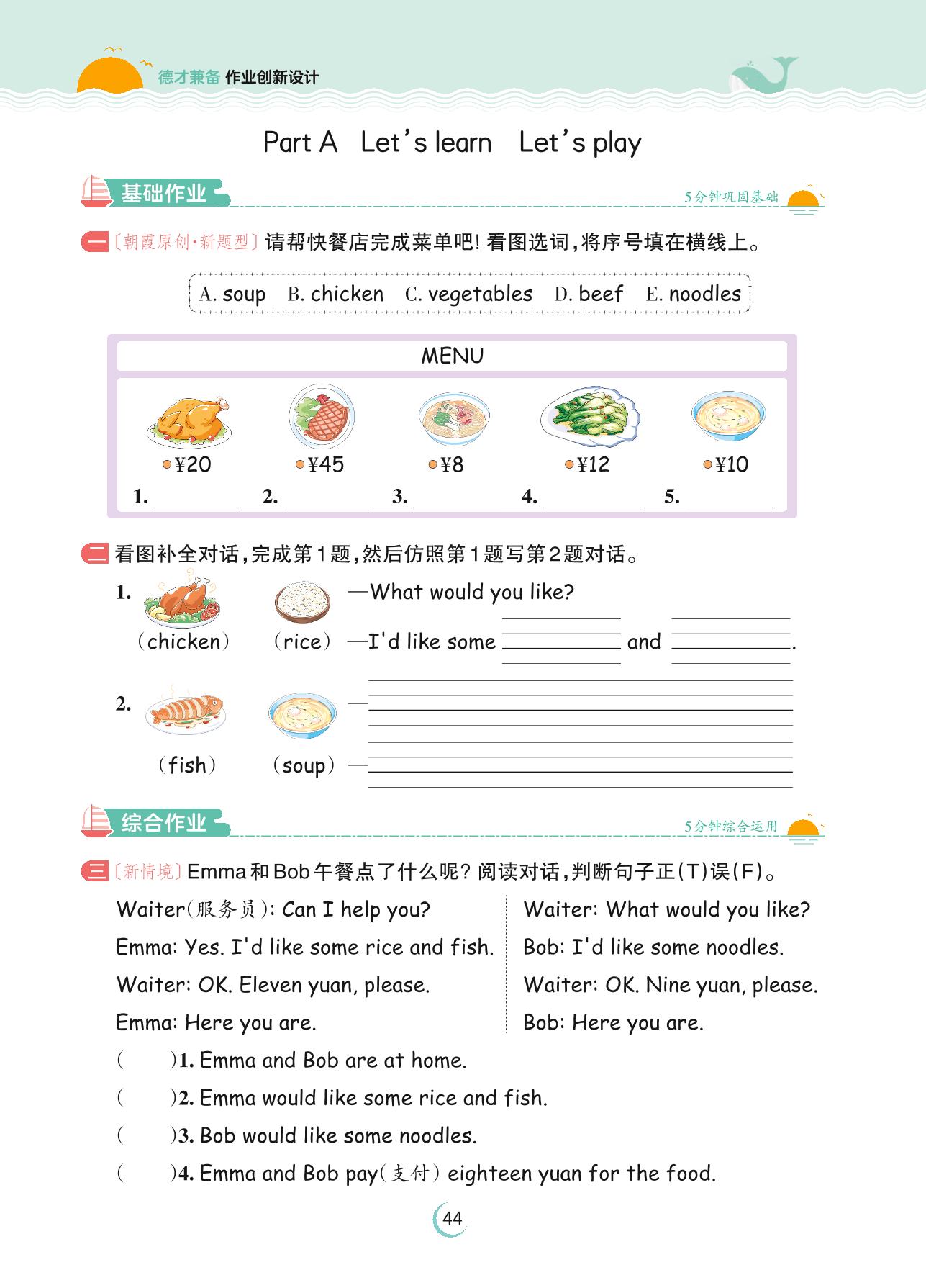 2023上册四年级英语人教PEP版 Unit 5—Part A Let’s learn Let’s play