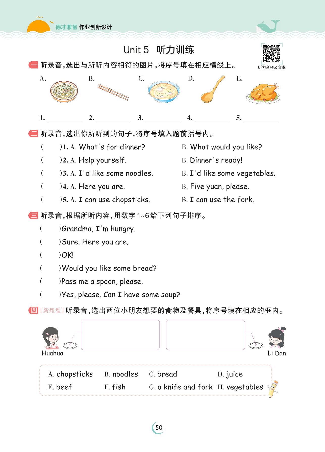 2023上册四年级英语人教PEP版 Unit 5 听力训练