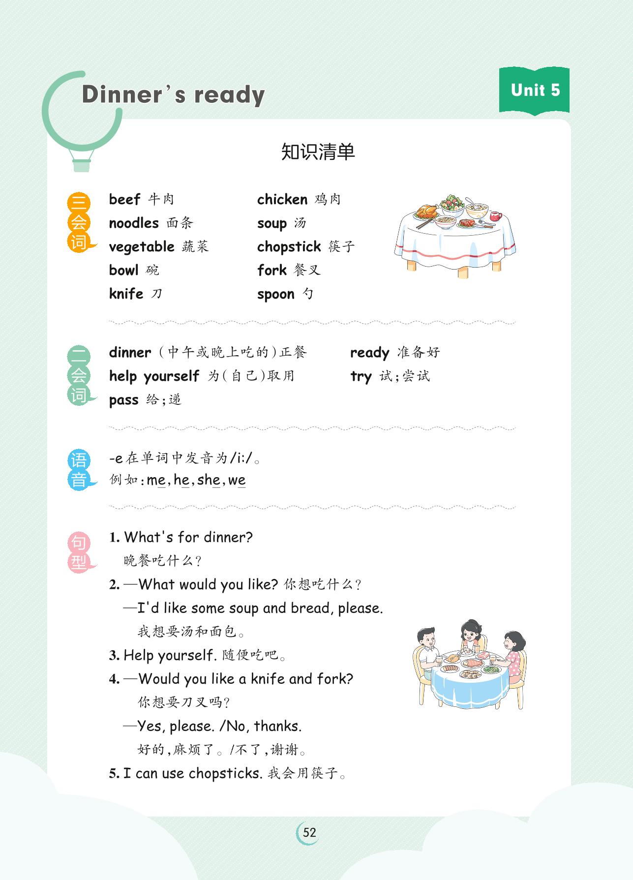 2023上册四年级英语人教PEP版 Unit 5 知识清单