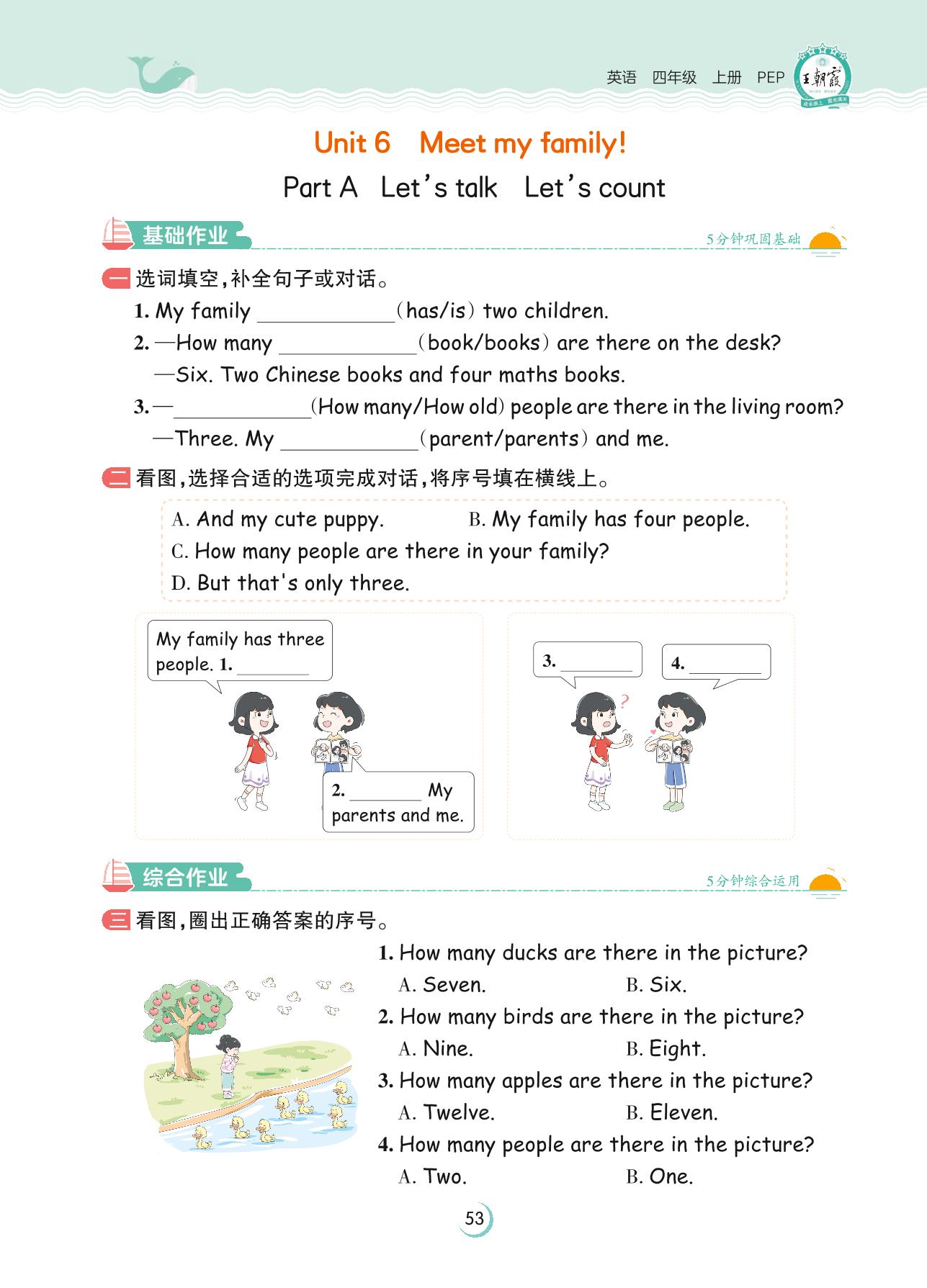 2023上册四年级英语人教PEP版 Unit 6—Part A Let’s talk Let’s count
