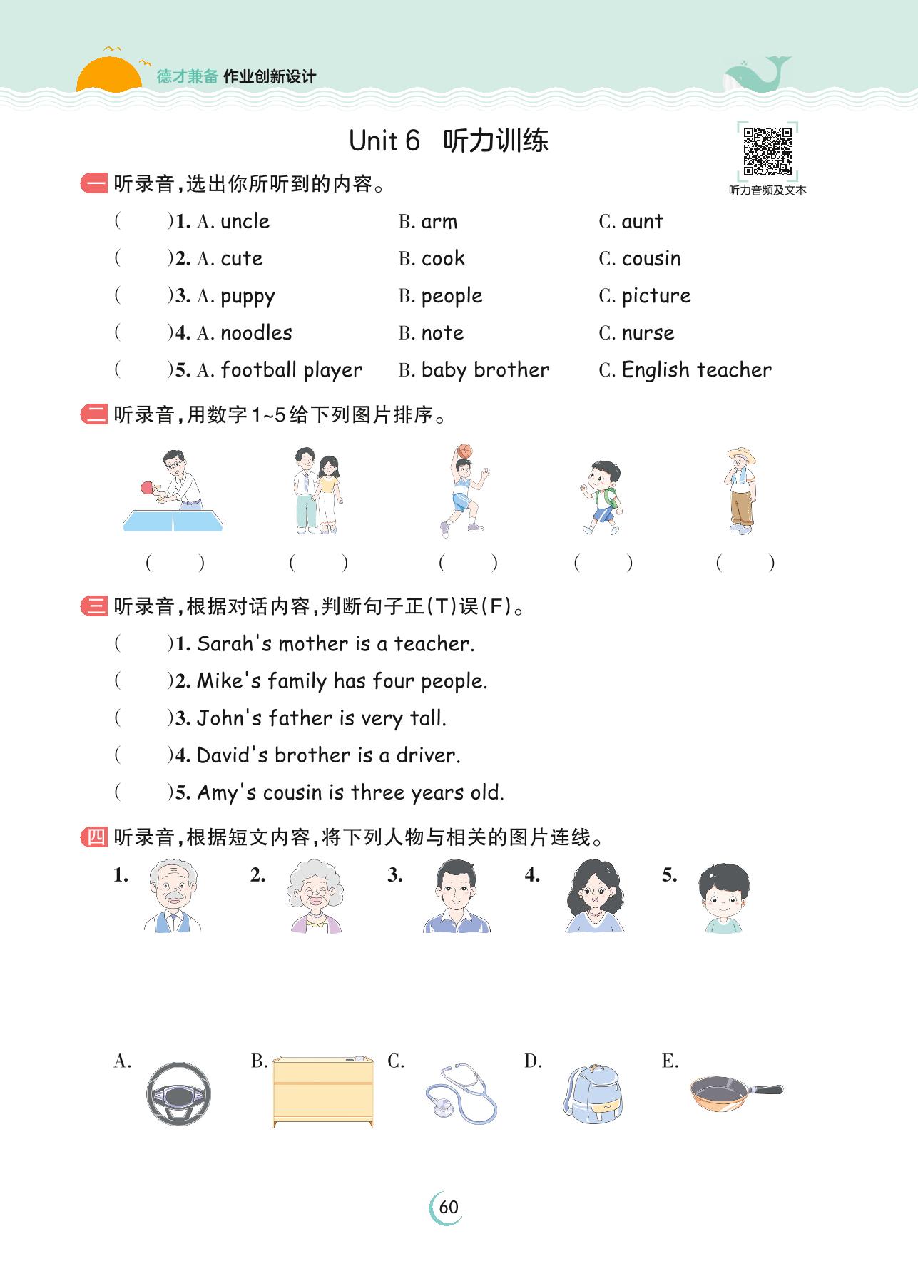 2023上册四年级英语人教PEP版 Unit 6 听力训练