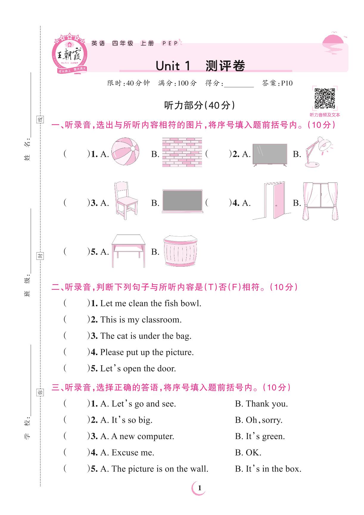 2023上册四年级英语人教PEP版 Unit 1 测评卷