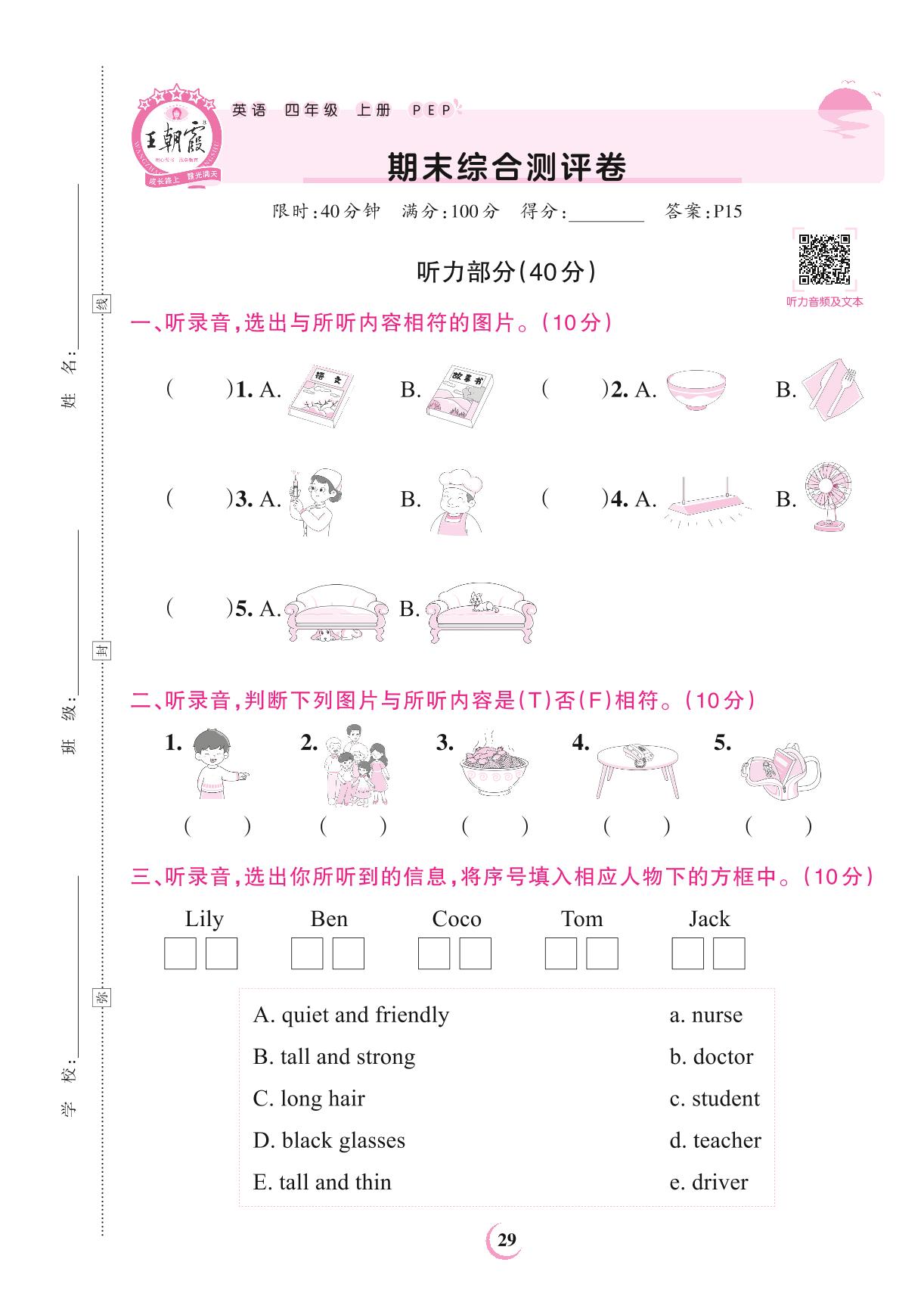 2023上册四年级英语人教PEP版 期末综合测评卷