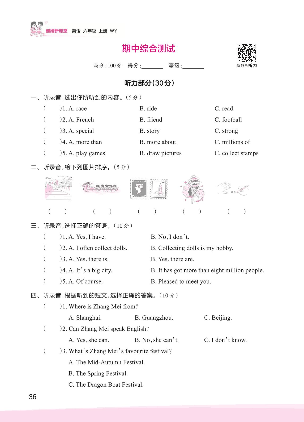 六年级英语外研版(三起始)上册期中卷