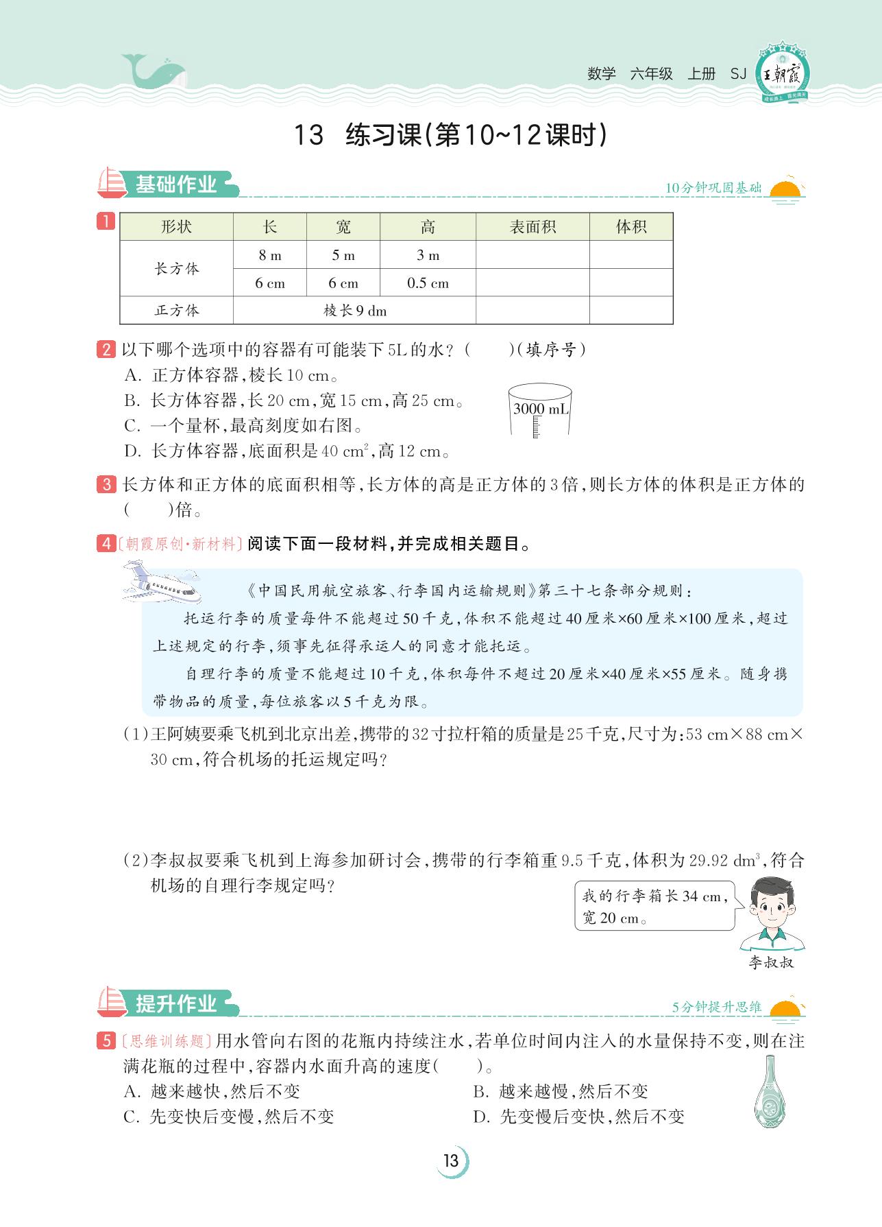 2023上册六年级数学苏教版 第一单元 长方体和正方体——13 练习课(第10~12课时)