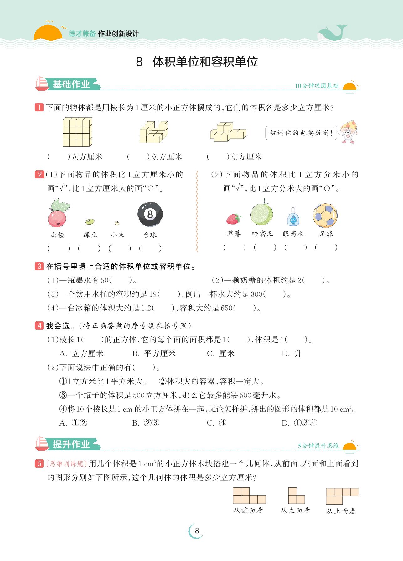 2023上册六年级数学苏教版 第一单元 长方体和正方体——8 体积单位和容积单位