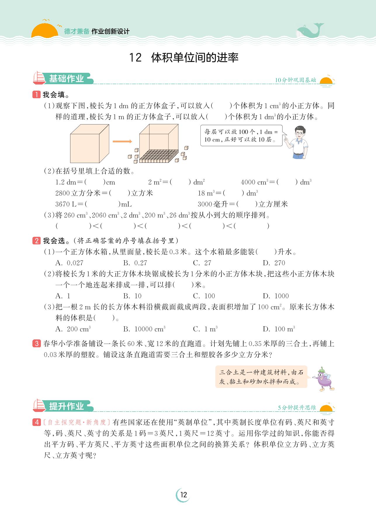 2023上册六年级数学苏教版 第一单元 长方体和正方体——12 体积单位间的进率