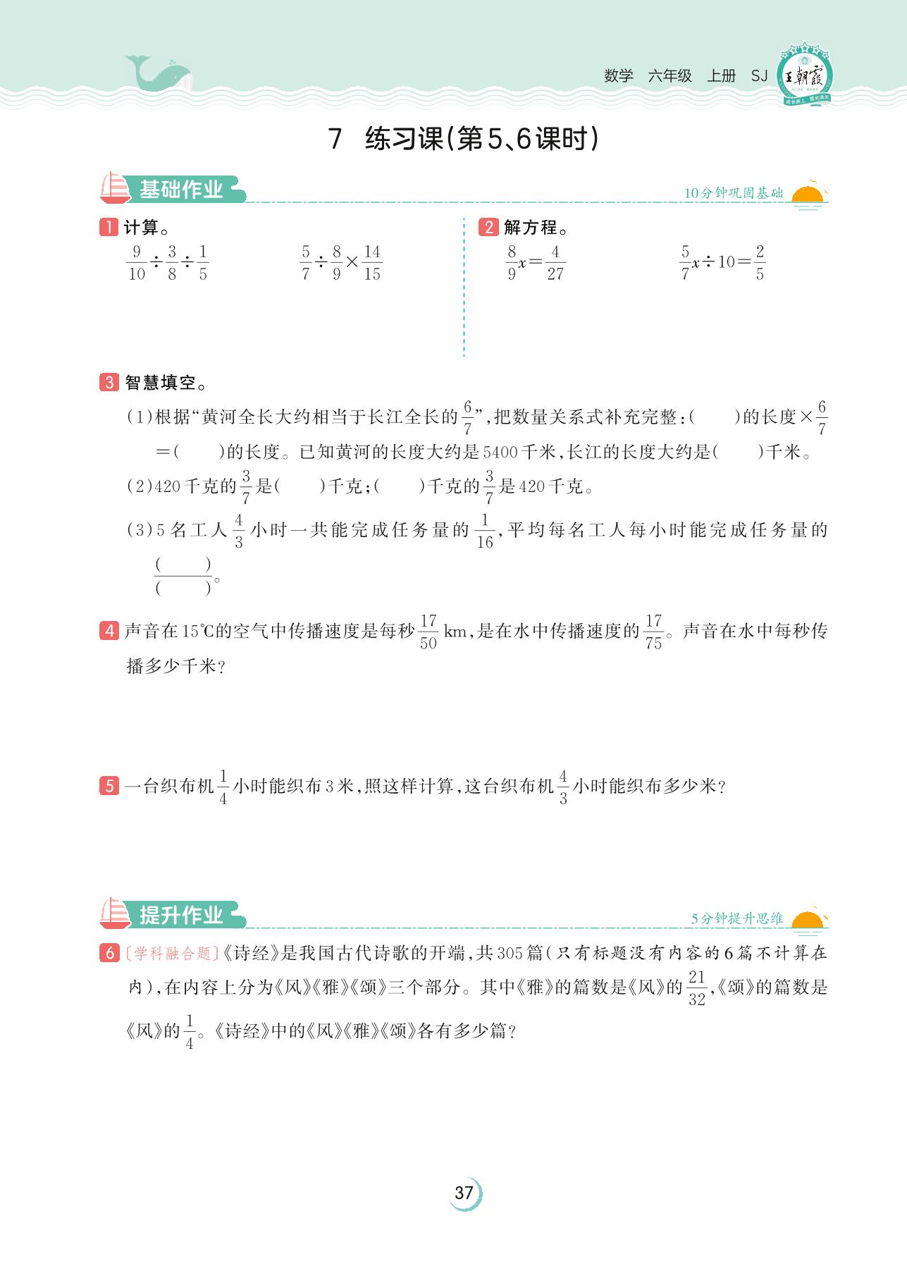 2023上册六年级数学苏教版 第三单元 分数除法——7 练习课(第5、6课时)