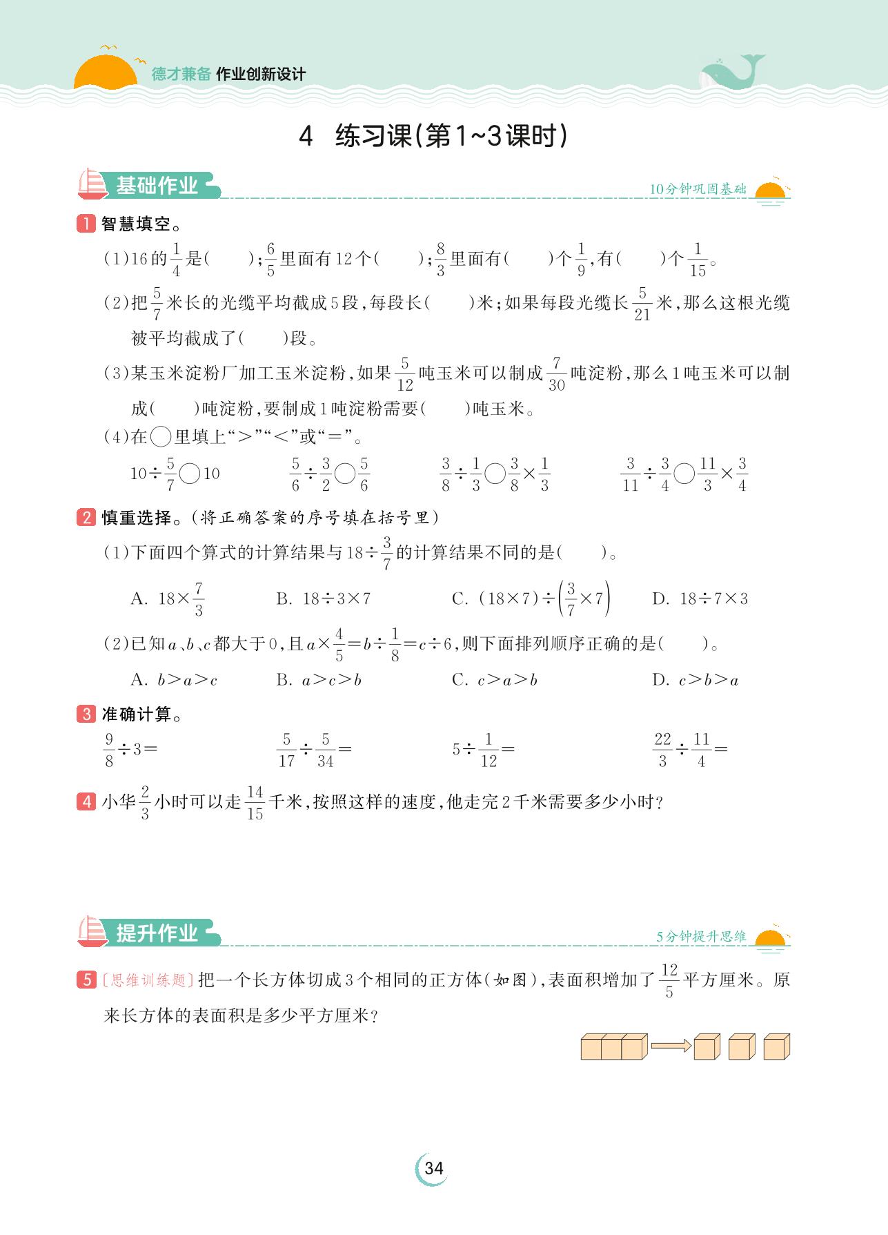 2023上册六年级数学苏教版 第三单元 分数除法——4 练习课(第1~3课时)