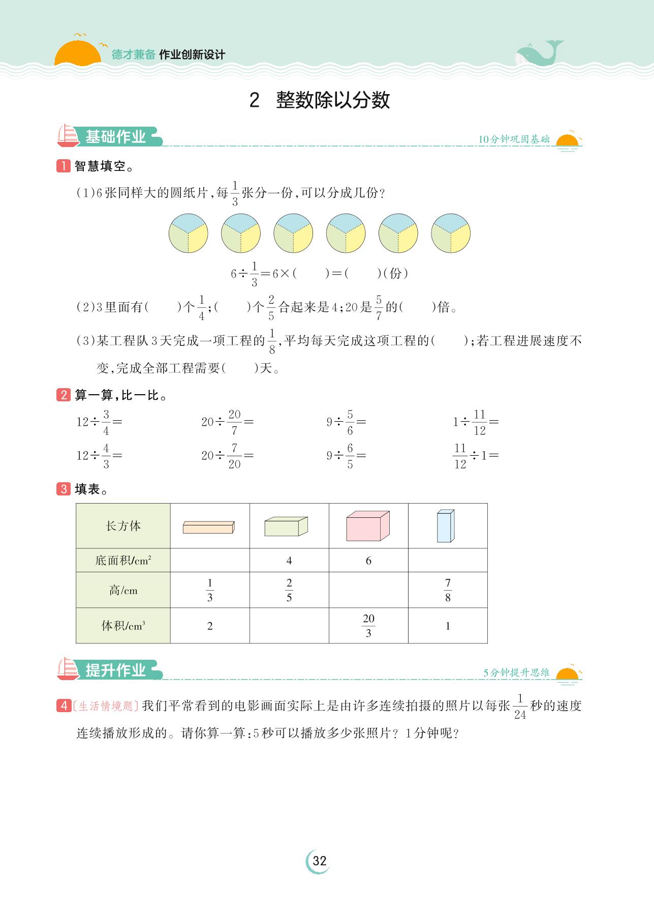 2023上册六年级数学苏教版 第三单元 分数除法——2 整数除以分数