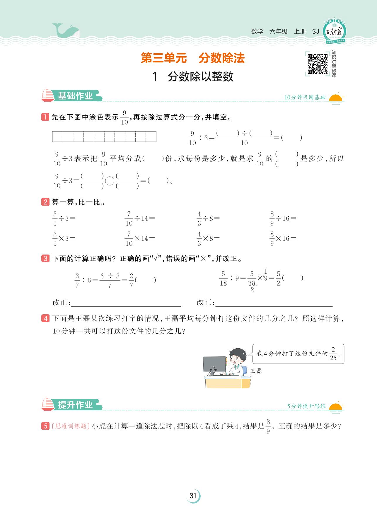 2023上册六年级数学苏教版 第三单元 分数除法——1 分数除以整数