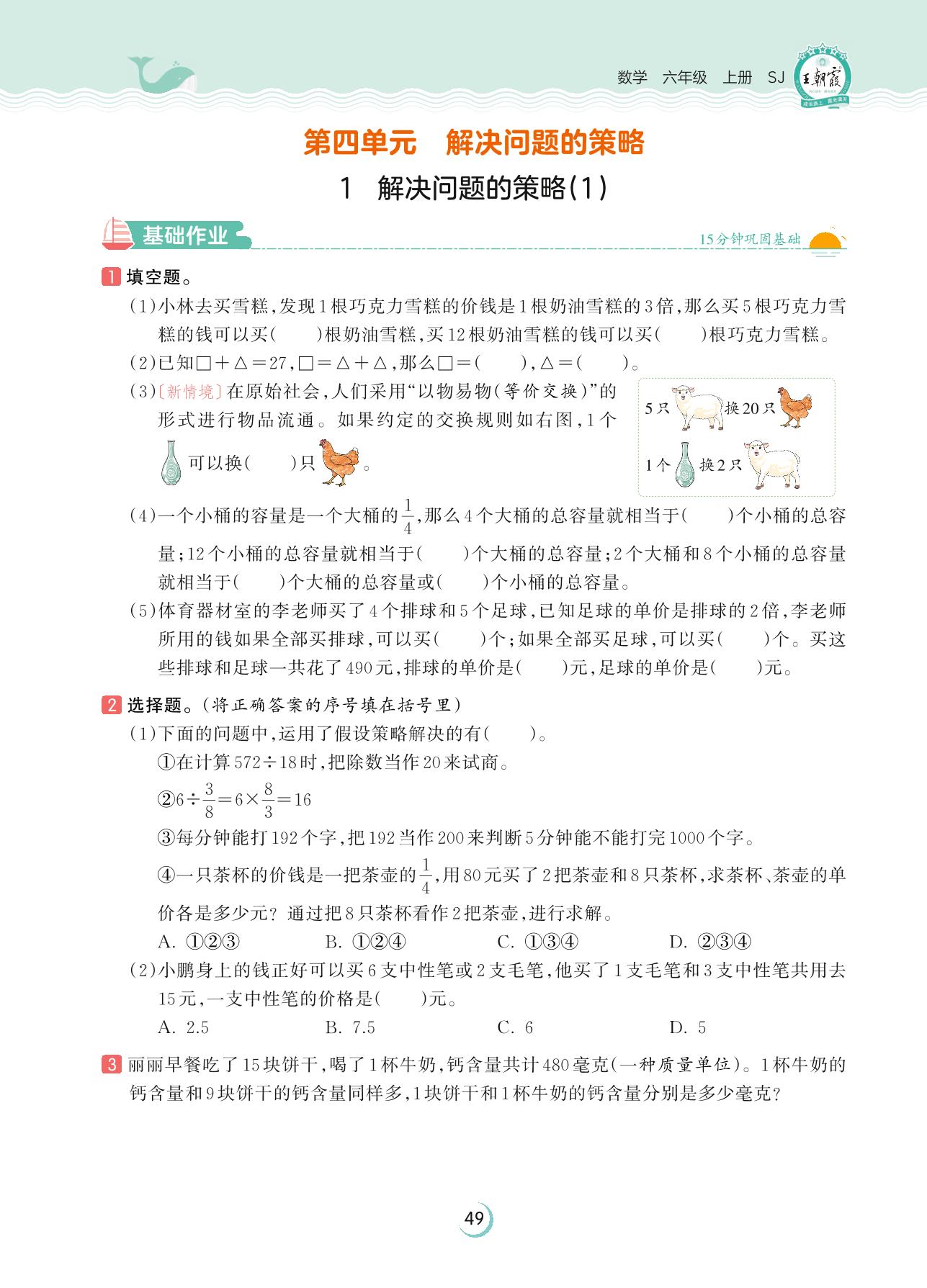 2023上册六年级数学苏教版 第四单元 解决问题的策略——1 解决问题的策略(1)