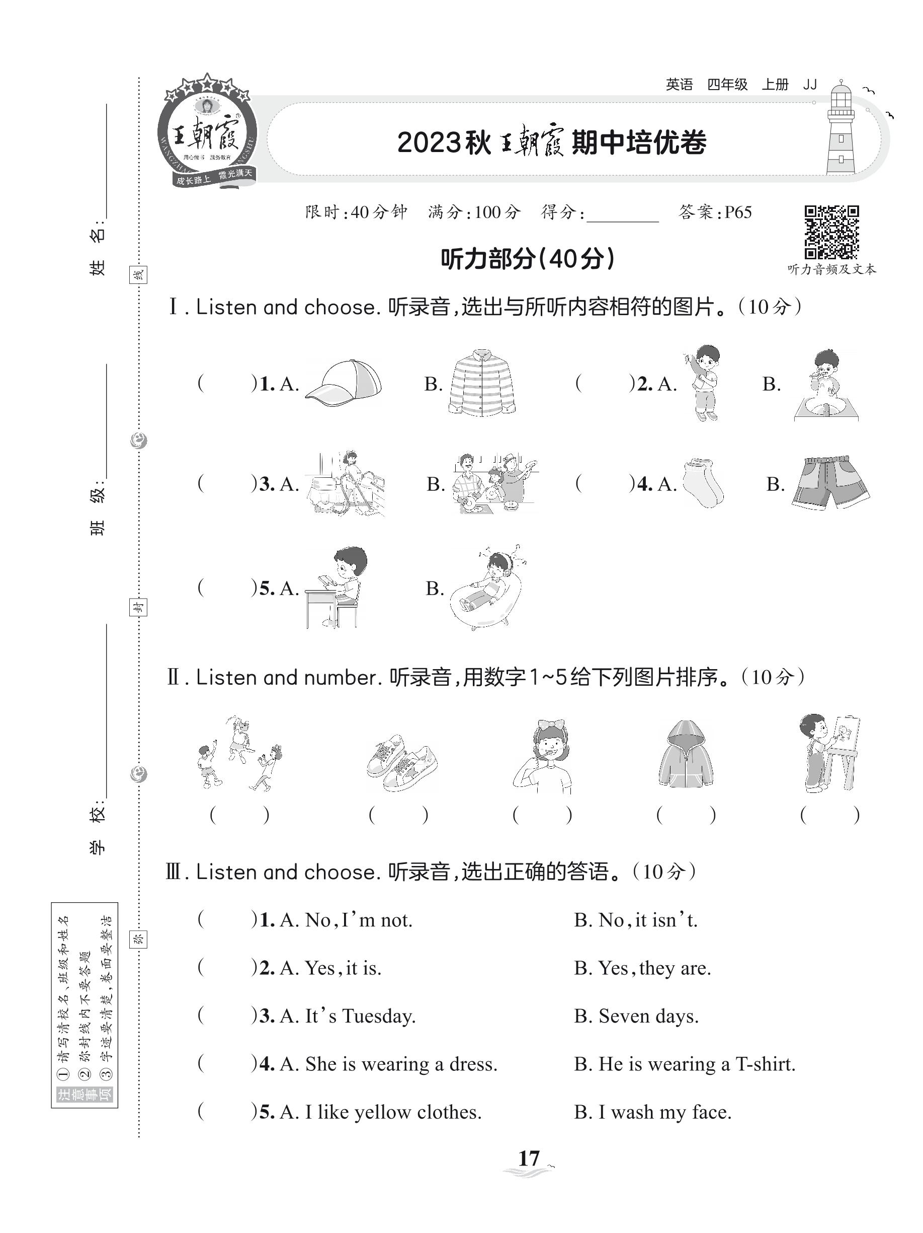 2023上册四年级英语冀教版 2023秋王朝霞期中培优卷