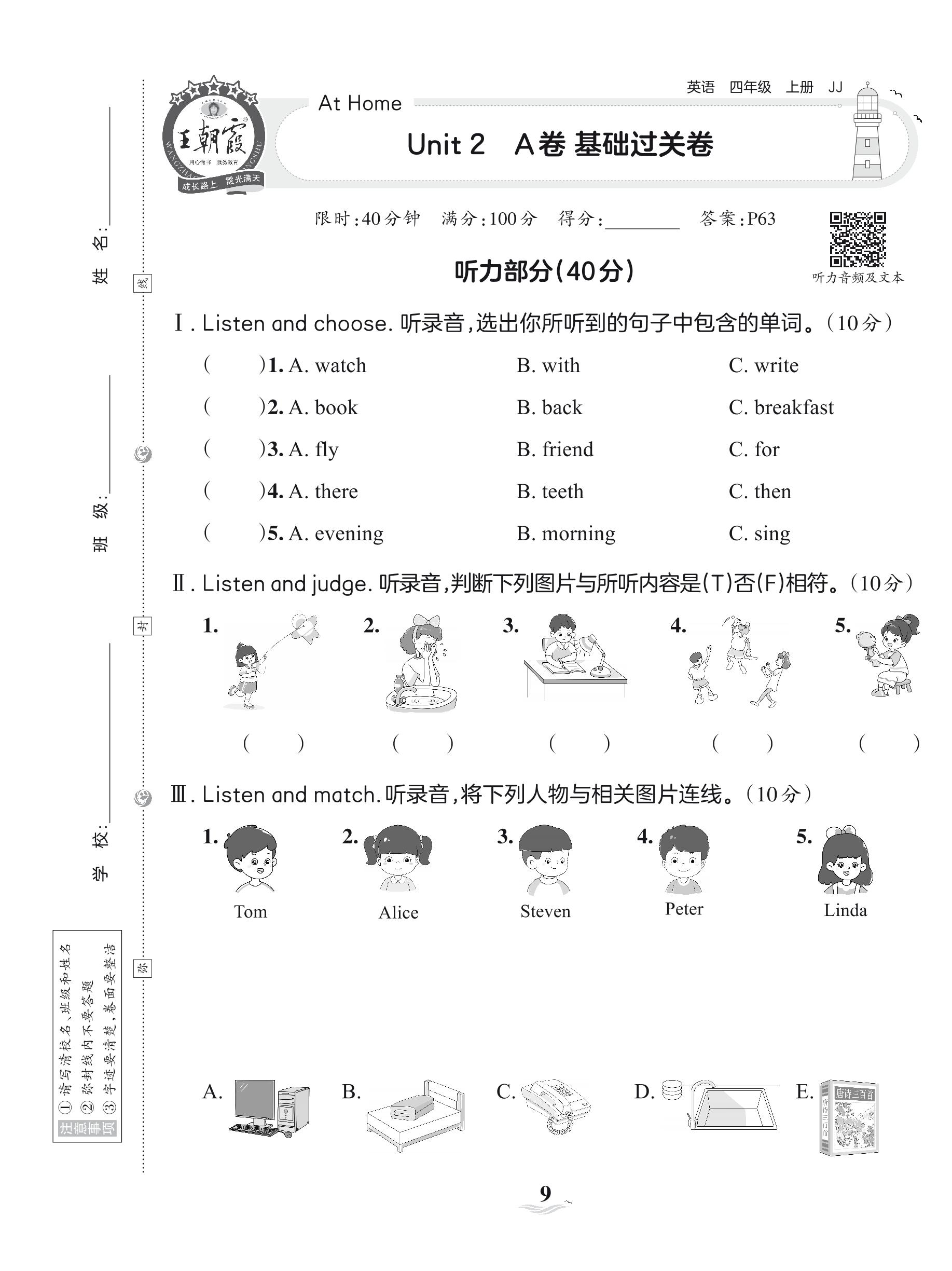 2023上册四年级英语冀教版 Unit 2 A卷 基础过关卷