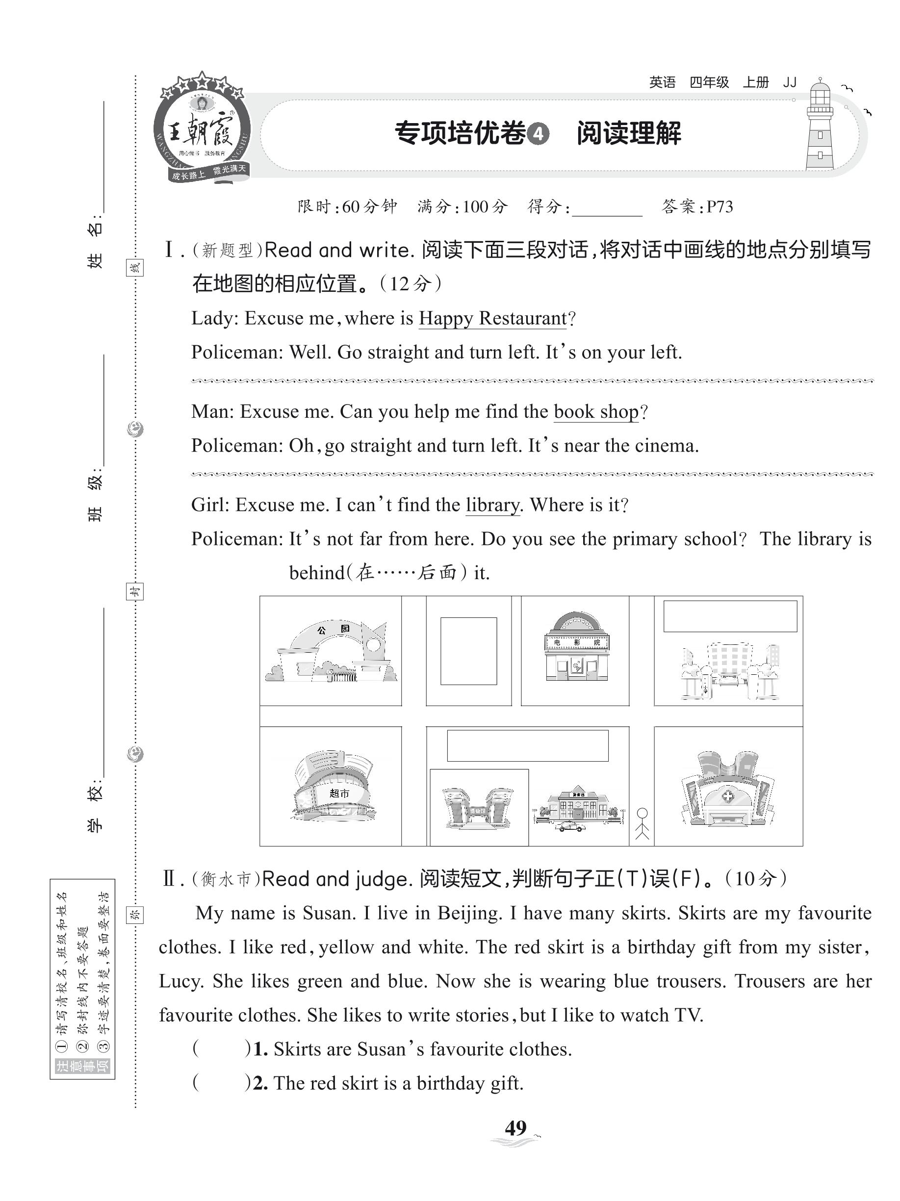 2023上册四年级英语冀教版 专项培优卷 4 阅读理解