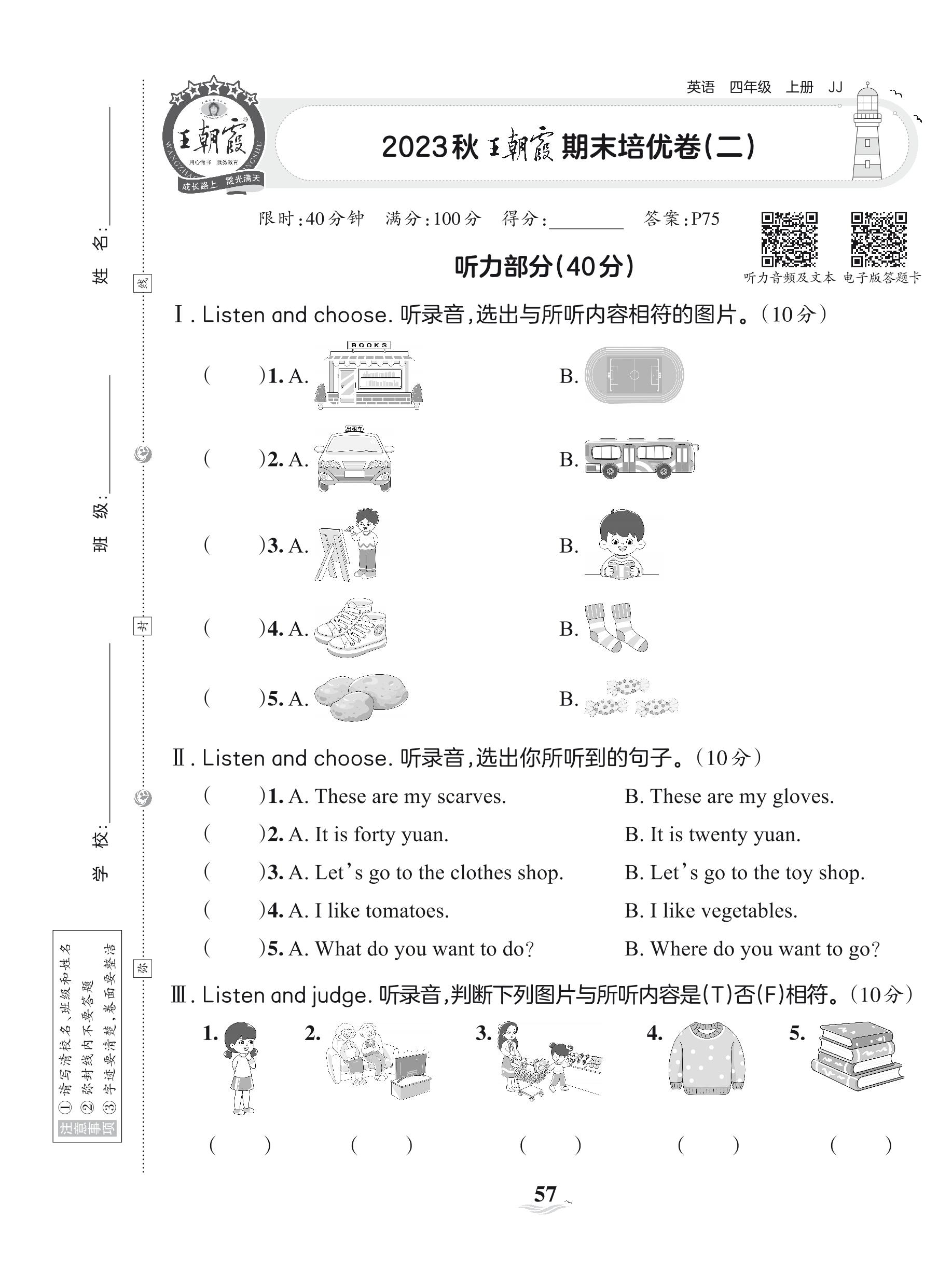 2023上册四年级英语冀教版 2023秋王朝霞期末培优卷(二)