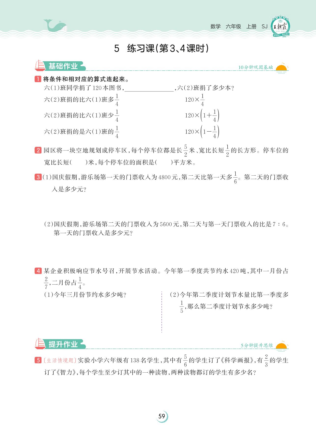 2023上册六年级数学苏教版 第五单元 分数四则混合运算——5 练习课(第3、4课时)