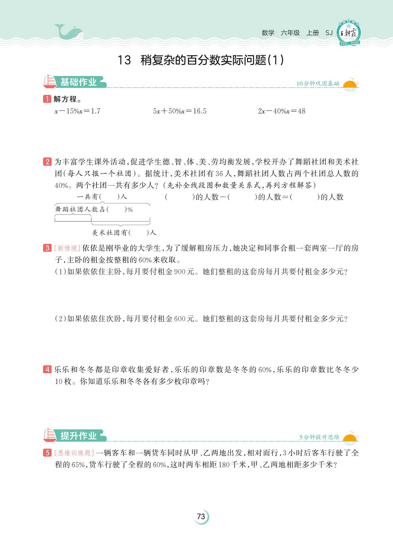 2023上册六年级数学苏教版 第六单元 百分数——13 稍复杂的百分数实际问题(1)