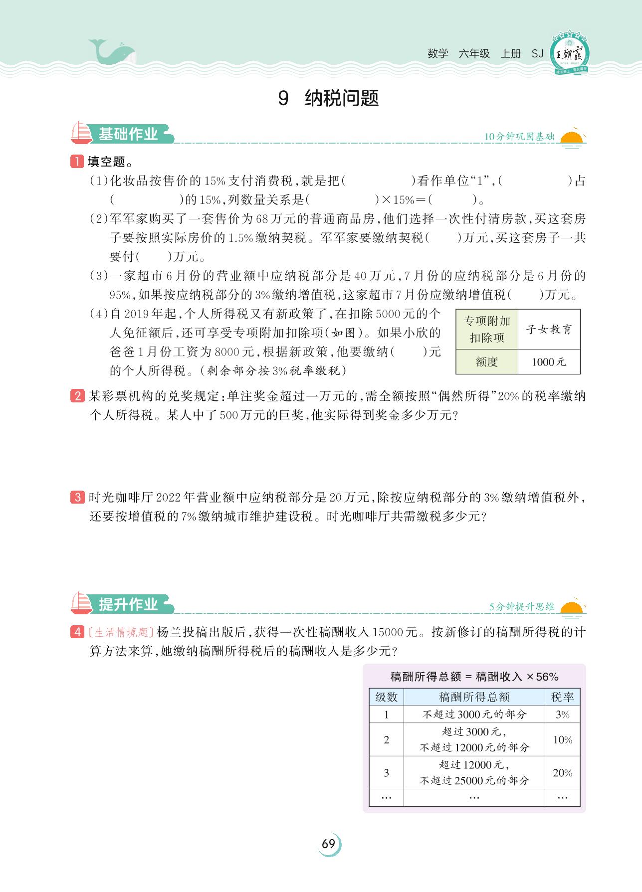 2023上册六年级数学苏教版 第六单元 百分数——9 纳税问题