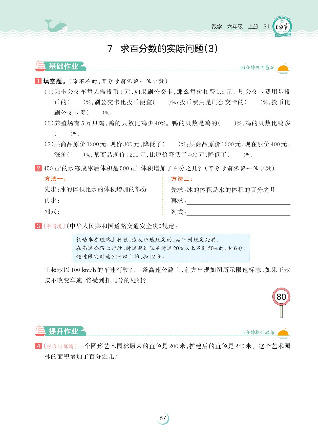 2023上册六年级数学苏教版 第六单元 百分数——7 求百分数的实际问题(3)