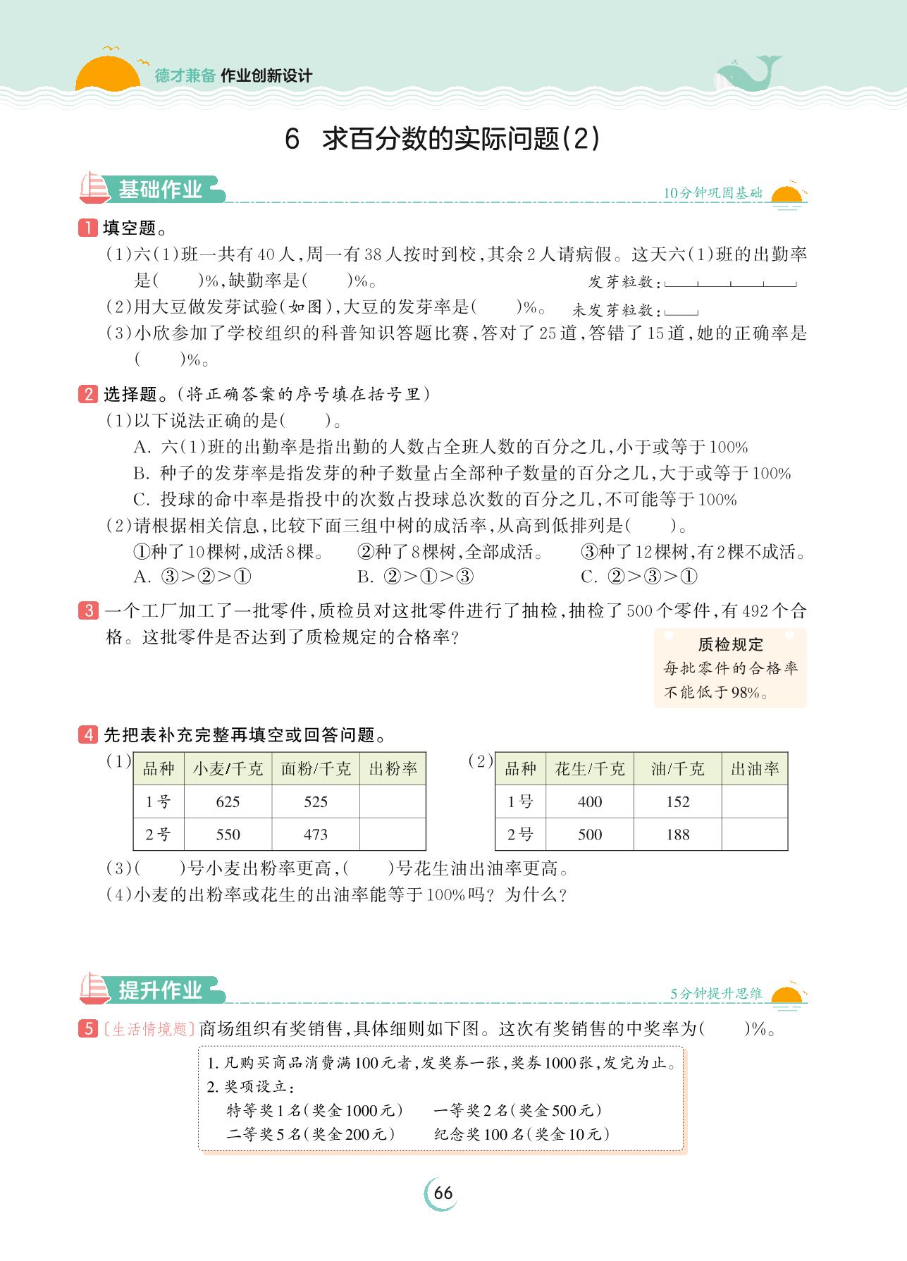 2023上册六年级数学苏教版 第六单元 百分数——6 求百分数的实际问题(2)