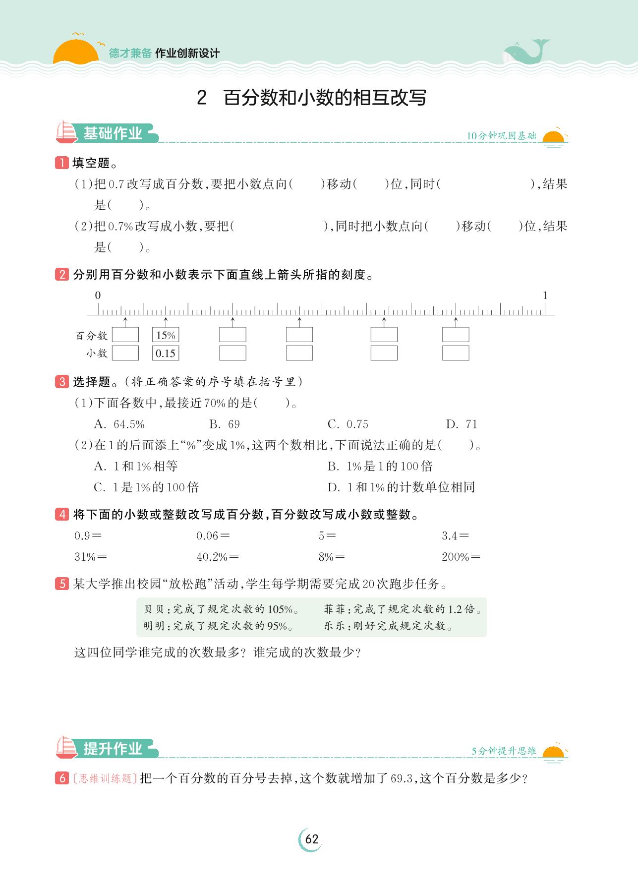 2023上册六年级数学苏教版 第六单元 百分数——2 百分数和小数的相互改写