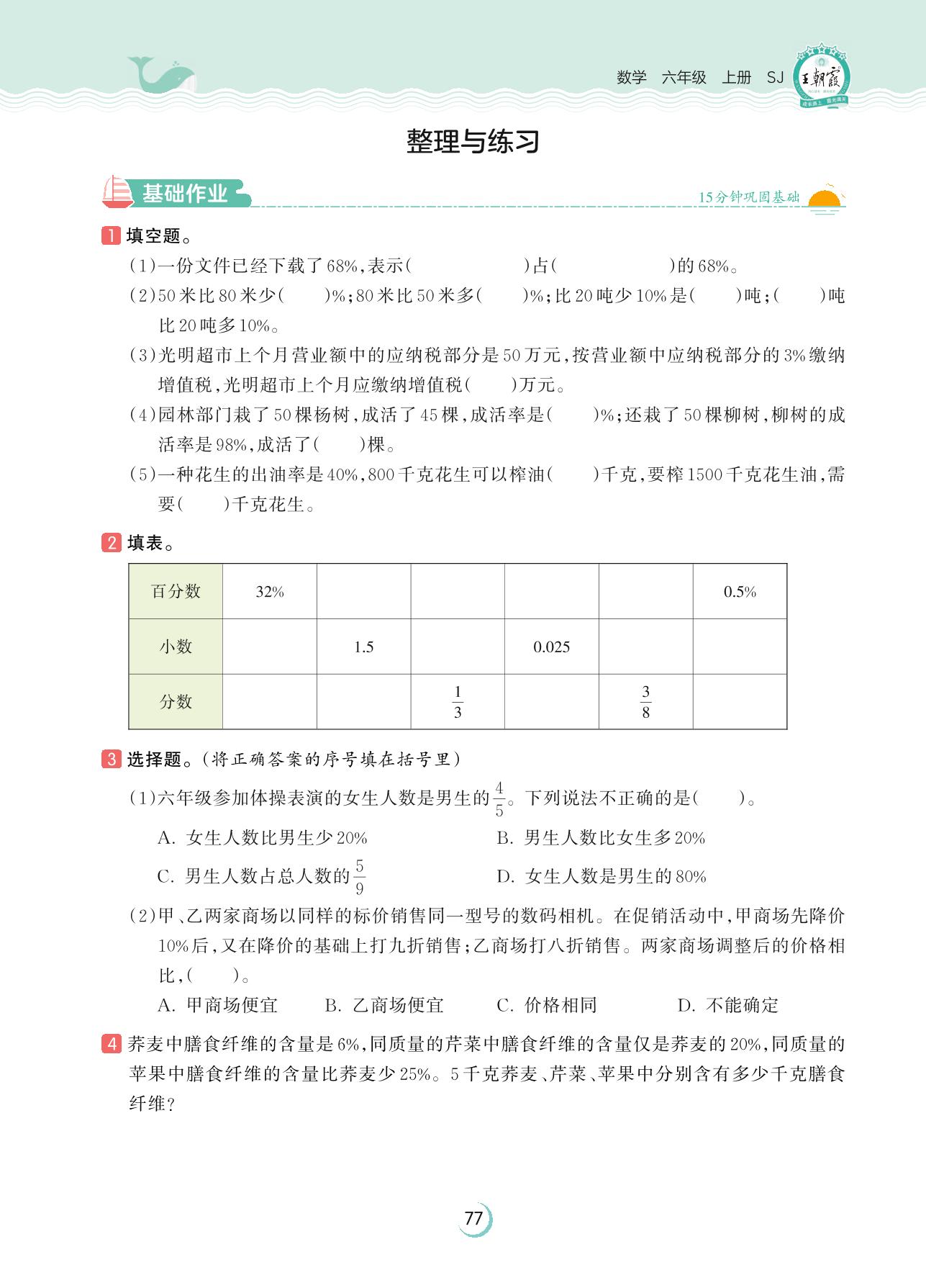 2023上册六年级数学苏教版 第六单元 百分数——整理与练习