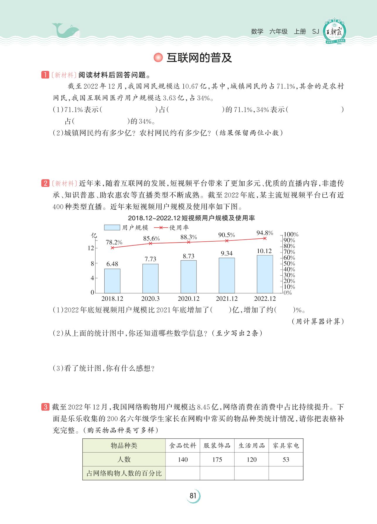 2023上册六年级数学苏教版 第六单元 百分数——互联网的普及