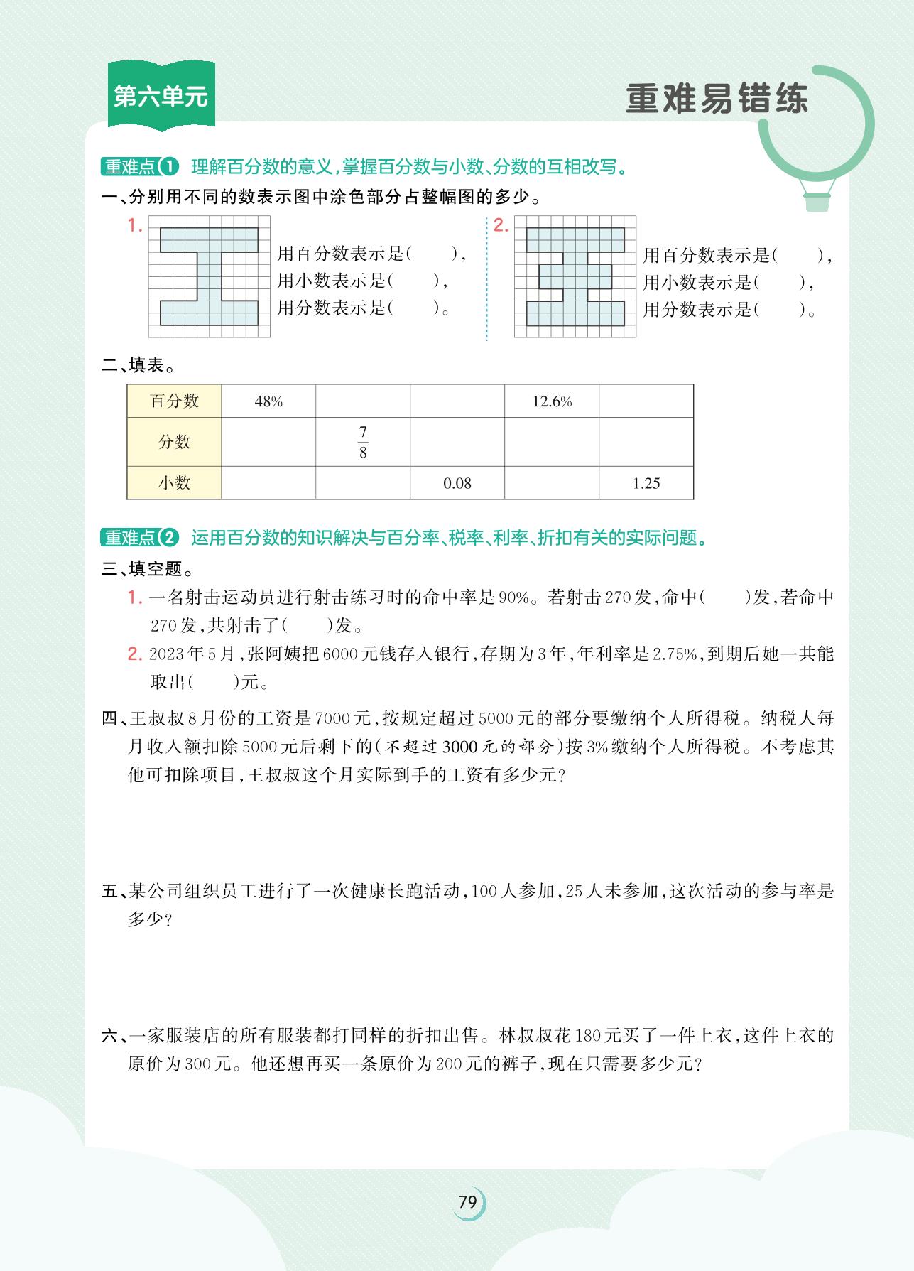 2023上册六年级数学苏教版 第六单元重难易错练