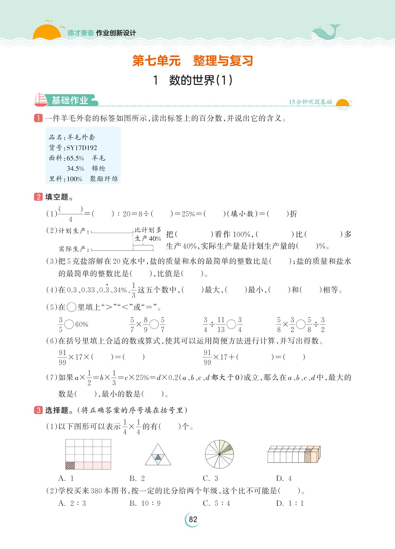 2023上册六年级数学苏教版 第七单元 整理与复习——1 数的世界(1)