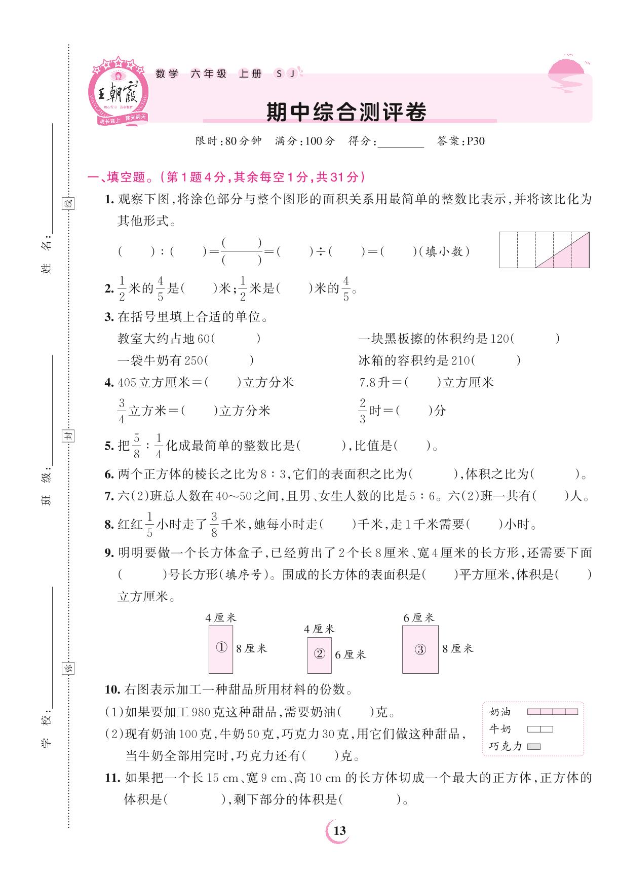 六年级数学苏教版上册期中卷