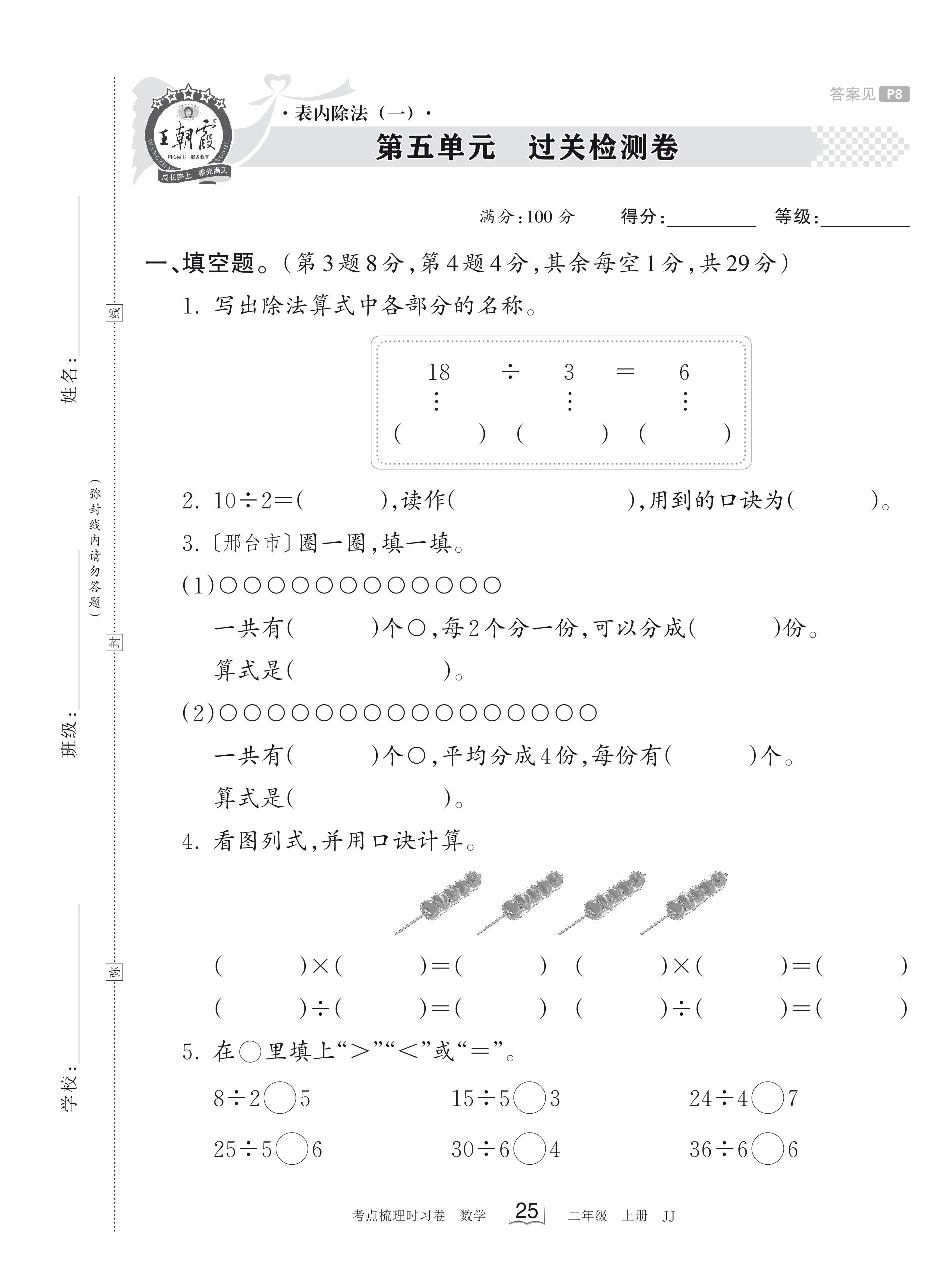 2023上册二年级数学冀教版 第五单元 过关检测卷