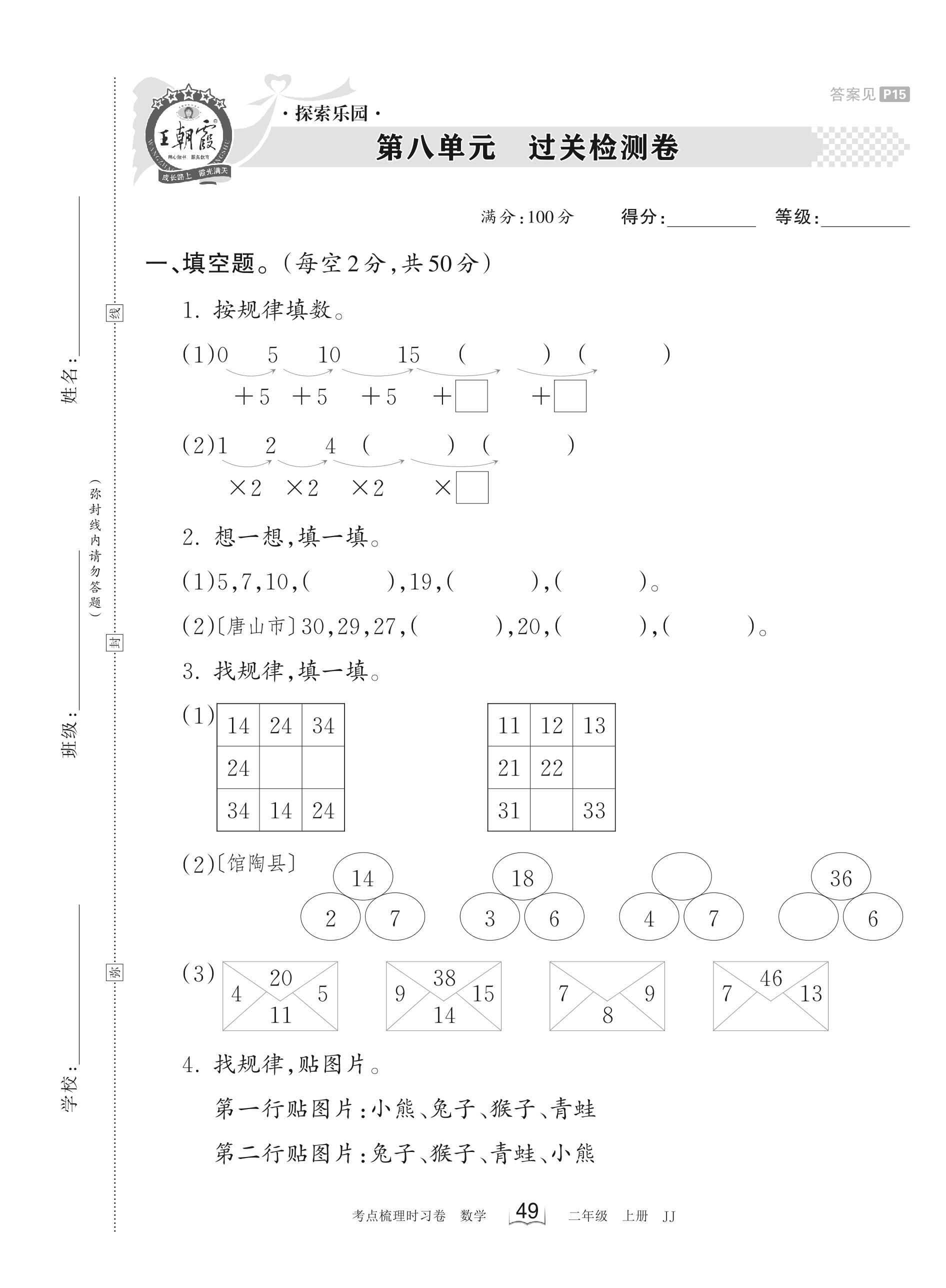 2023上册二年级数学冀教版 第八单元 过关检测卷