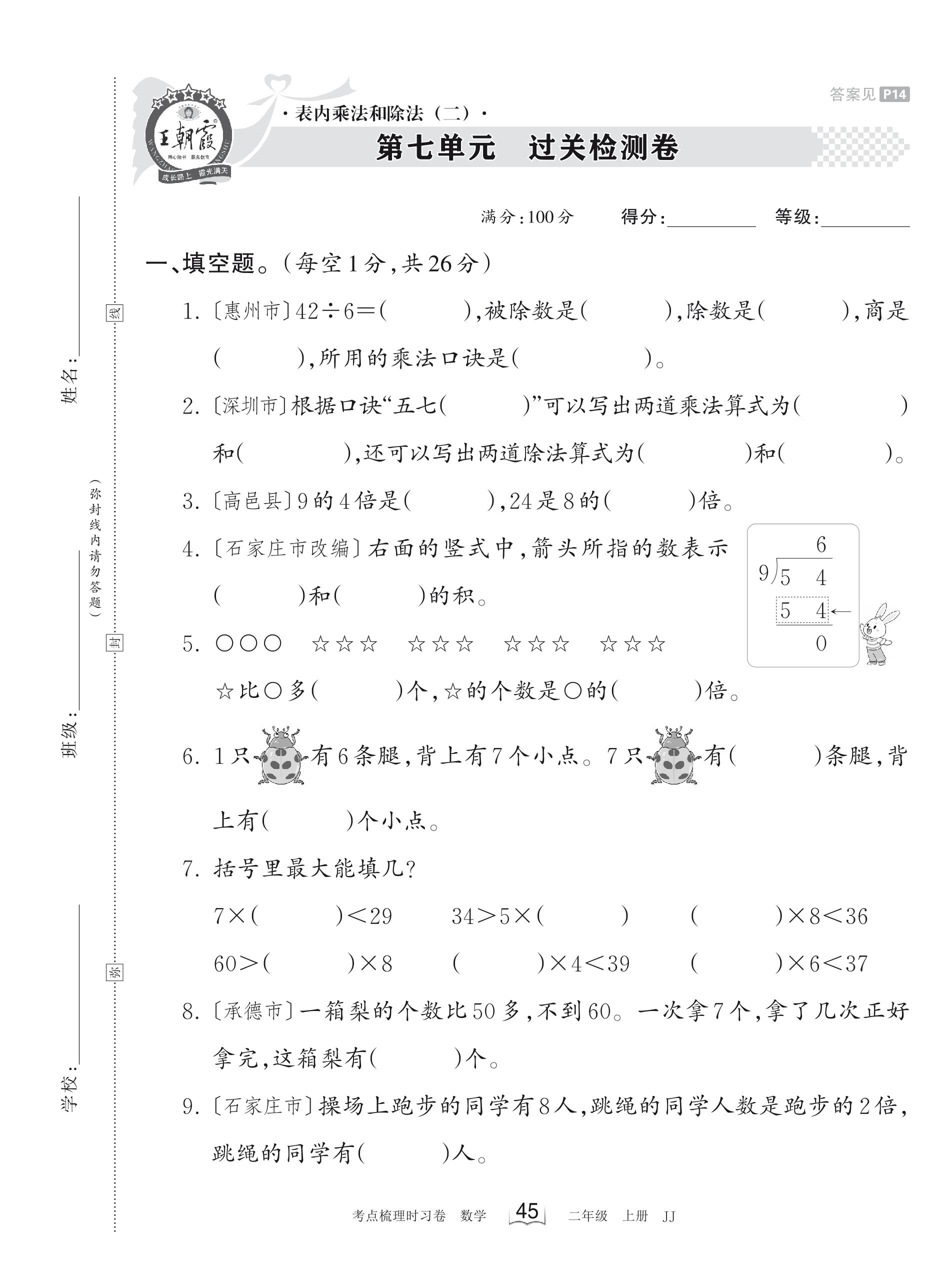 2023上册二年级数学冀教版 第七单元 过关检测卷