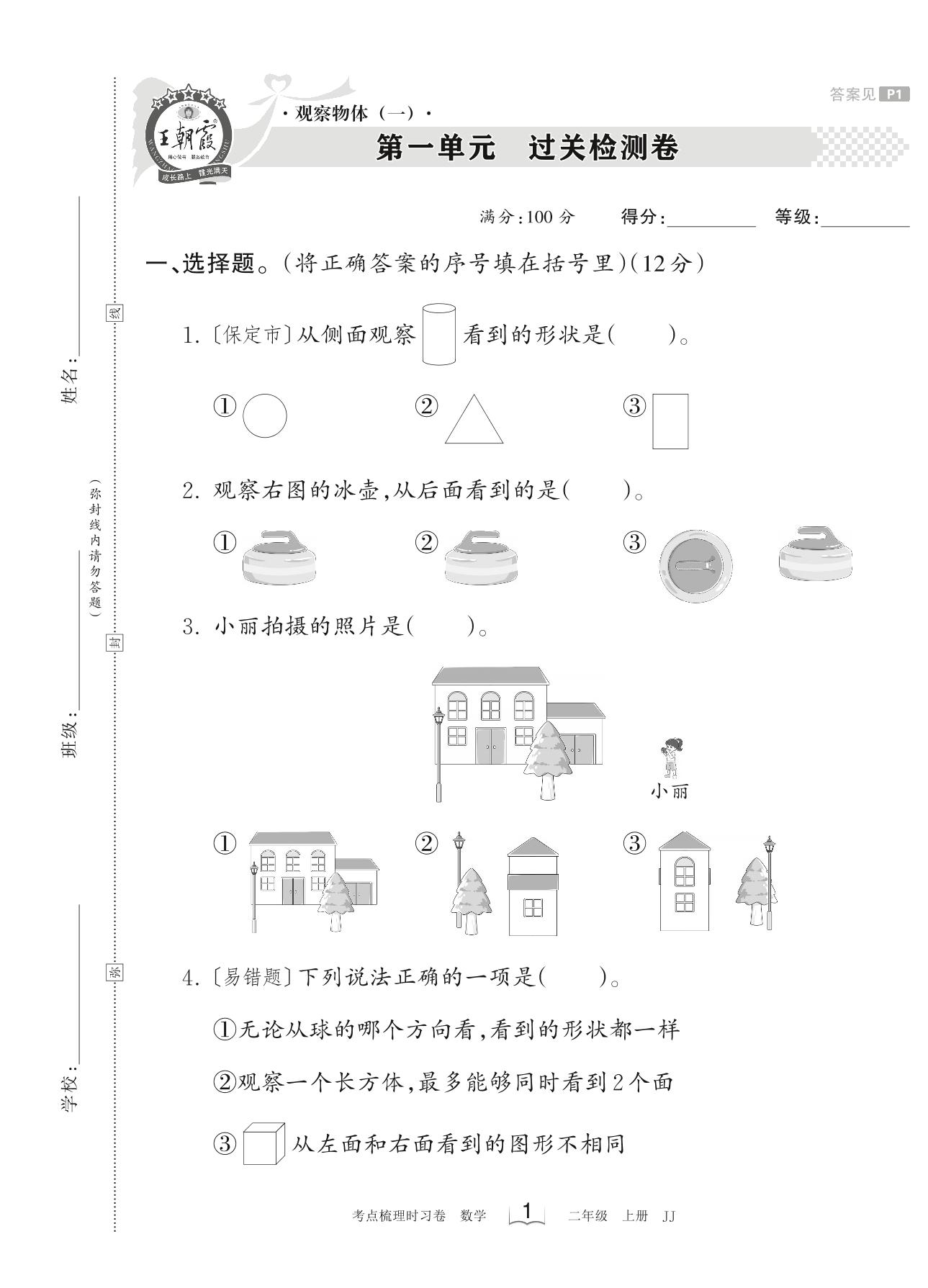 2023上册二年级数学冀教版 第一单元 过关检测卷