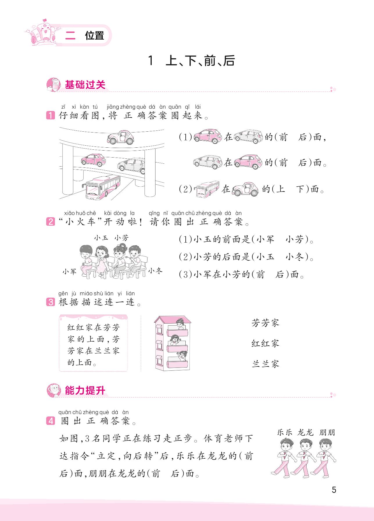 2023上册一年级数学人教版 二 位置——1 上、下、前、后