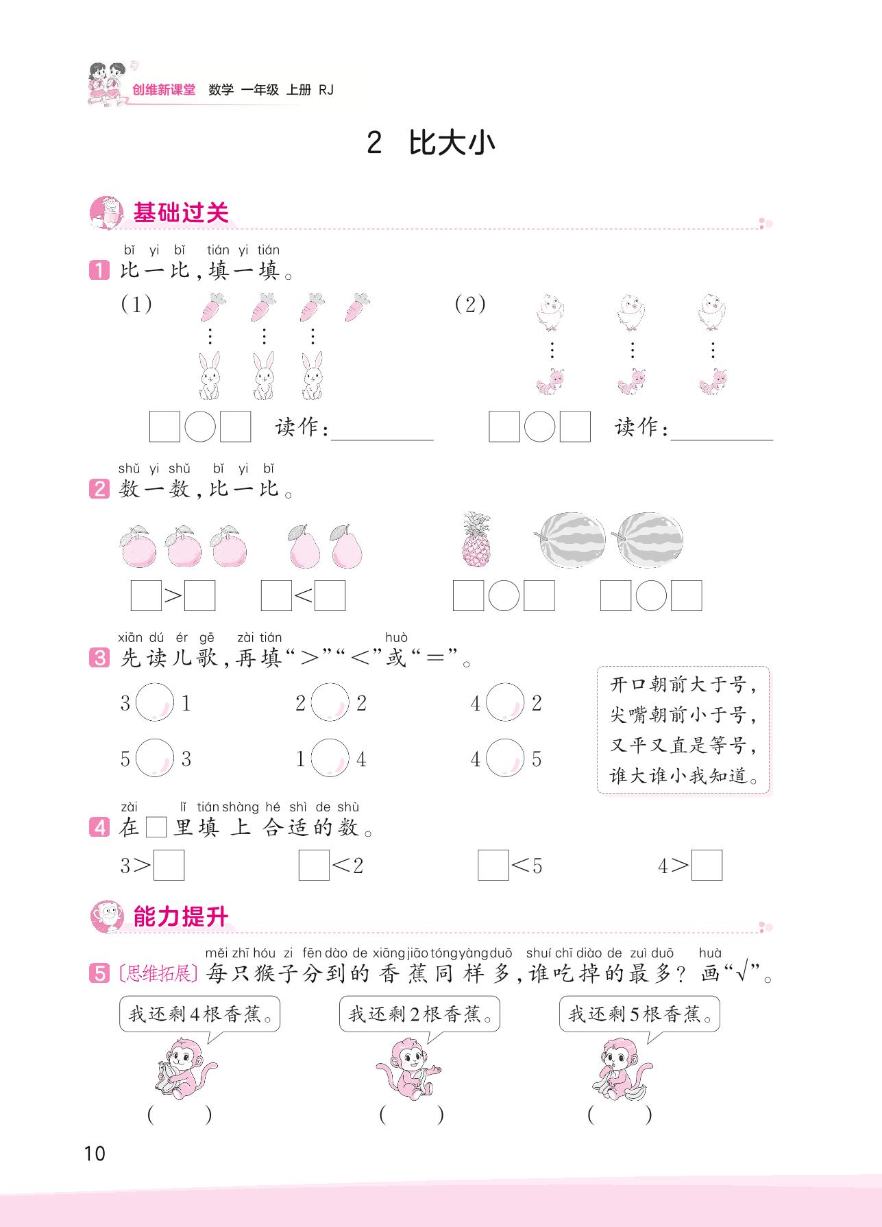 2023上册一年级数学人教版 三 5以内数的认识和加减法——2 比大小