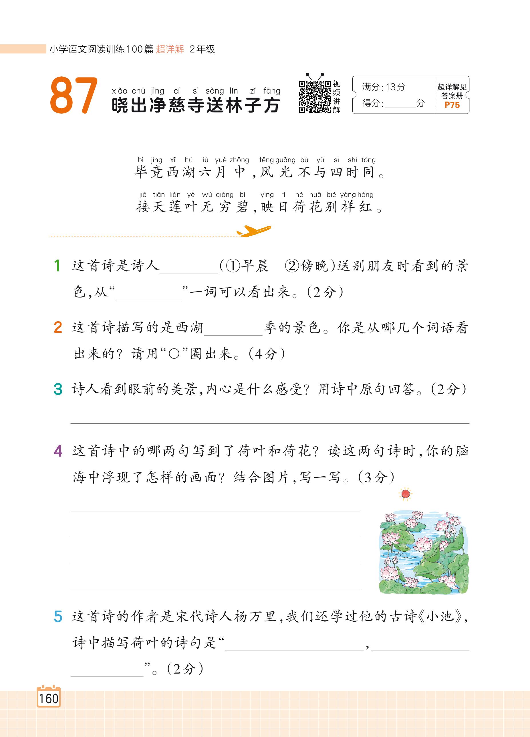 2024全一册二年级语文人教版 专题七 文化经典 87 晓出净慈寺送林子方