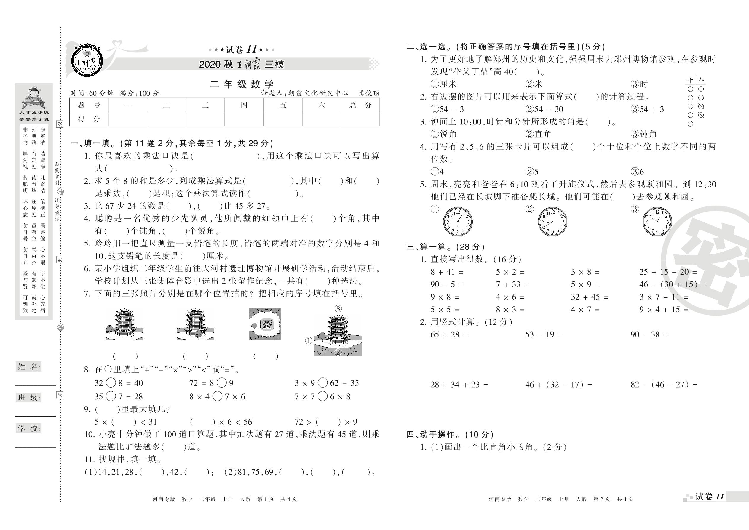 王朝霞期末模拟卷二年级上册数学(人教版)_R21080384710【11】