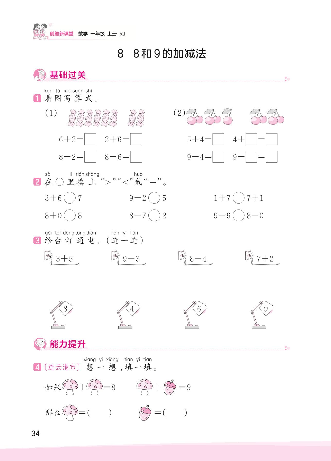 2023上册一年级数学人教版 五 6~10的认识和加减法——8 8和9的加减法