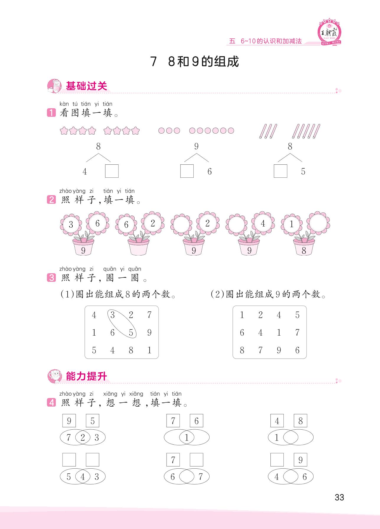 2023上册一年级数学人教版 五 6~10的认识和加减法——7 8和9的组成