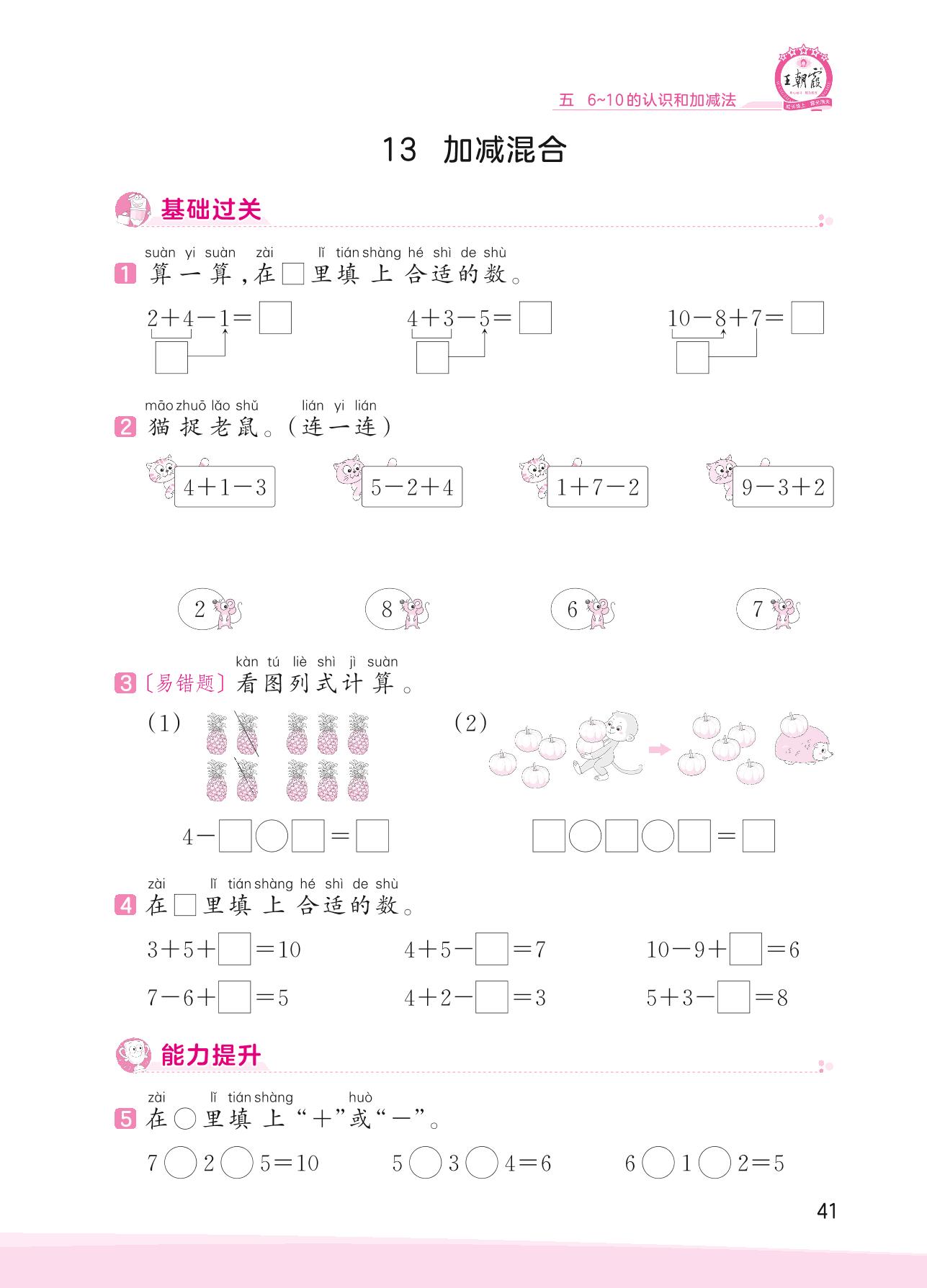 2023上册一年级数学人教版 五 6~10的认识和加减法——13 加减混合